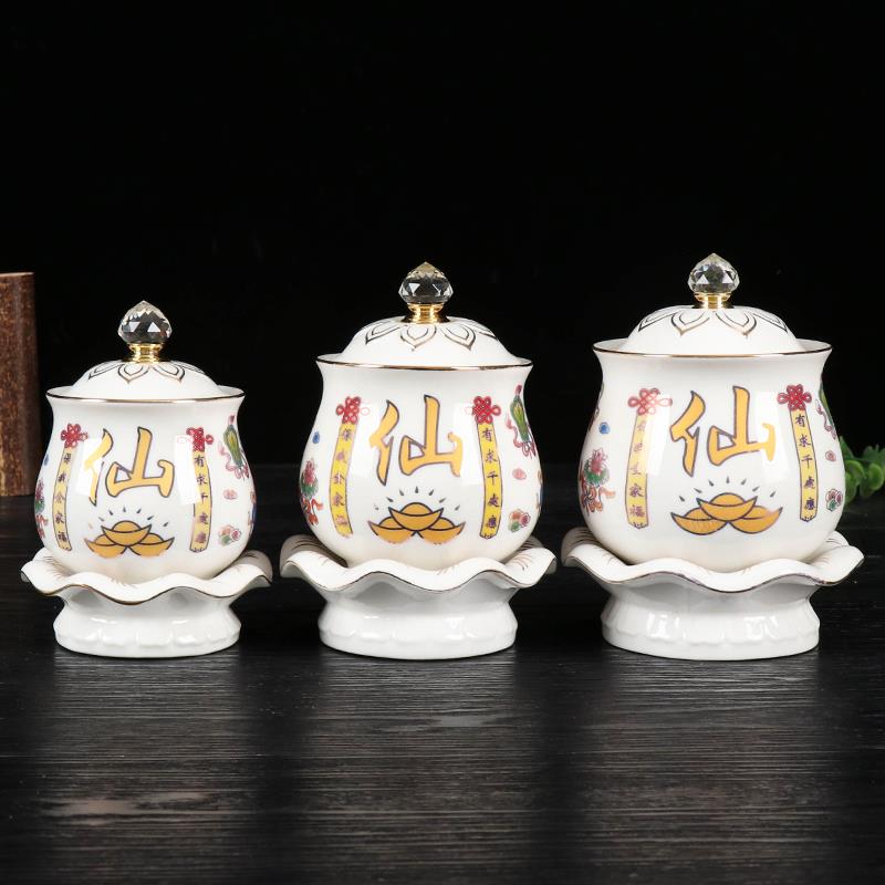 佛前供水杯陶瓷观音净水杯家用供奉财神仙家莲花供茶杯道家圣水杯