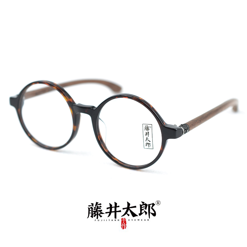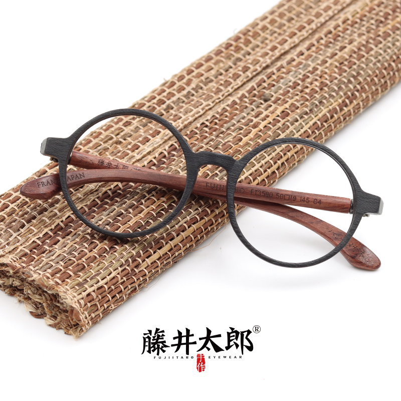 藤井太郎日系眼镜框男文艺大圆框木腿复古圆形木框眼镜架配近视女