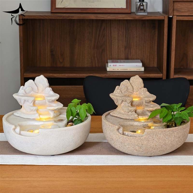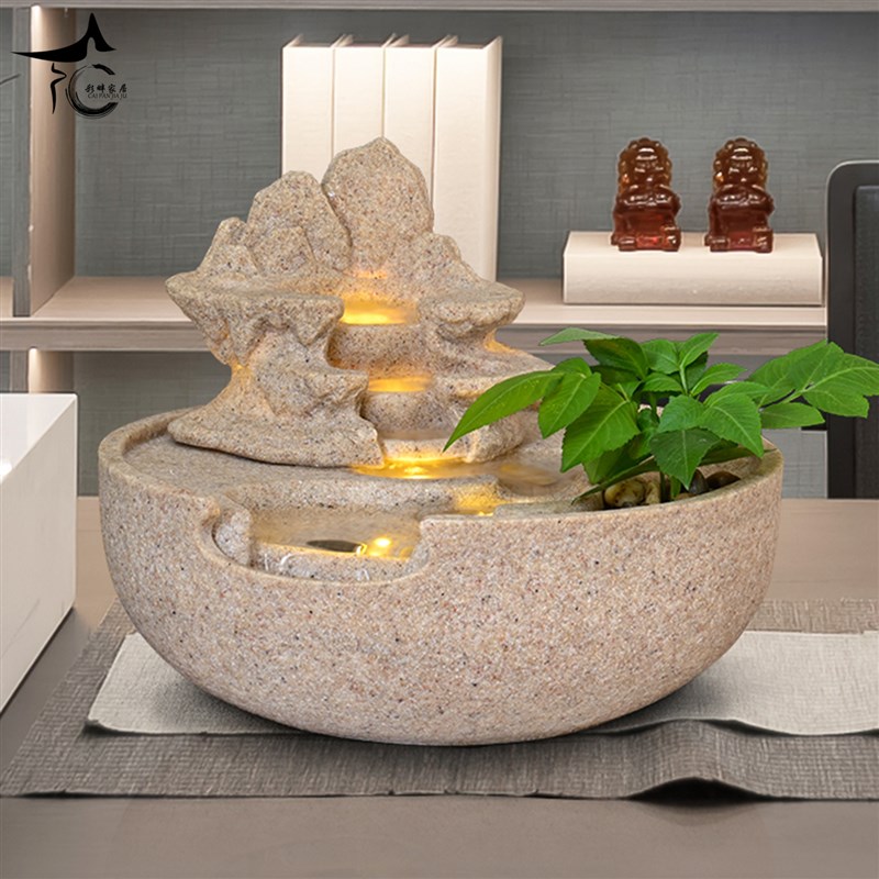 轻奢简约流水喷泉摆件办公室客厅玄关桌面生财循环水景开 业