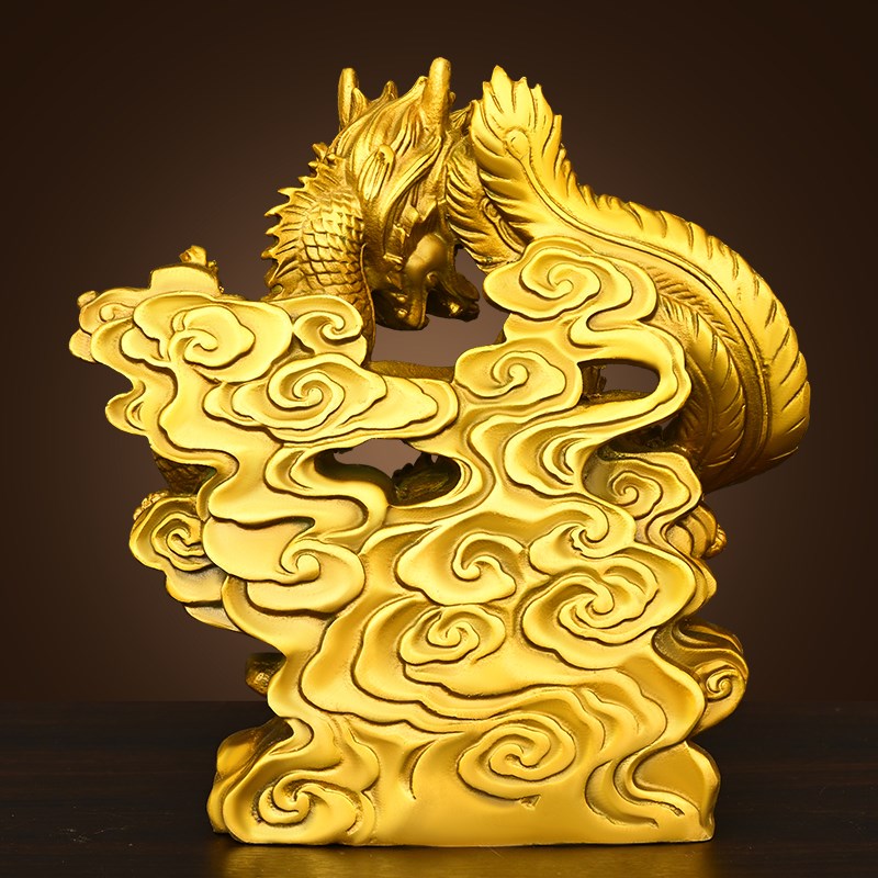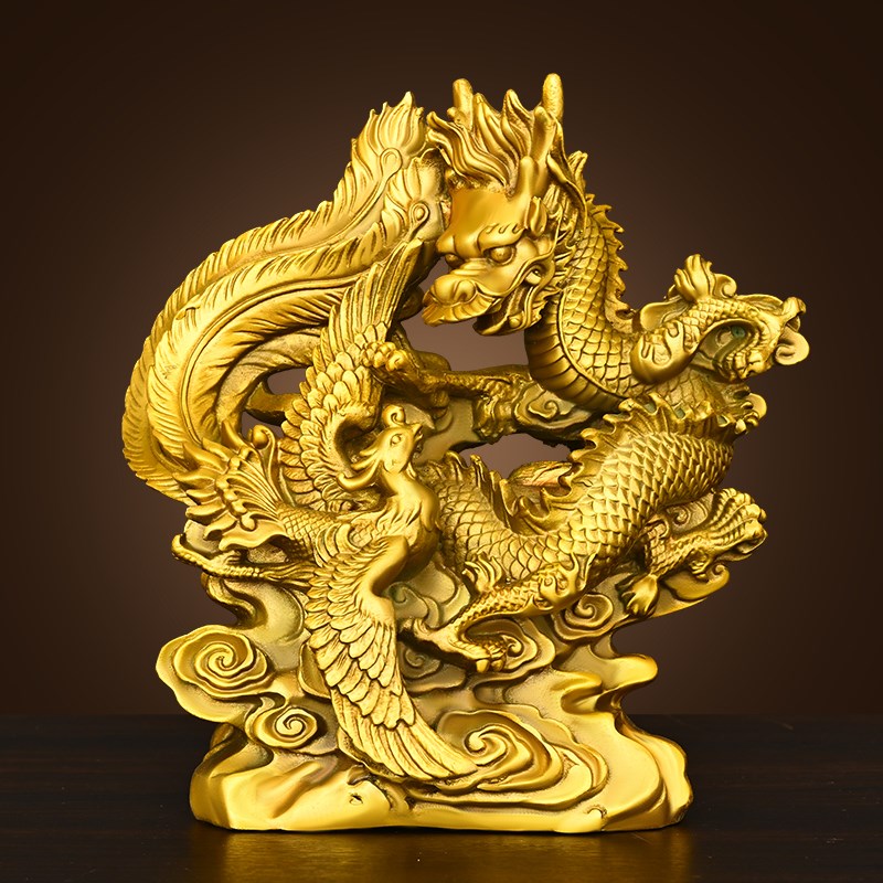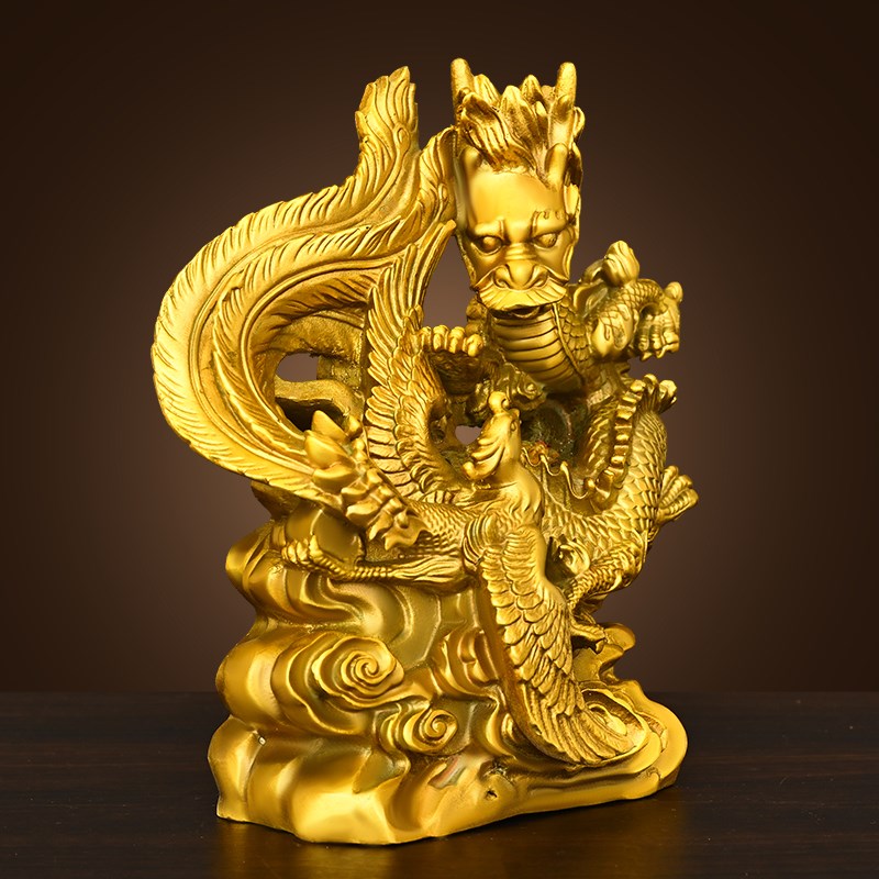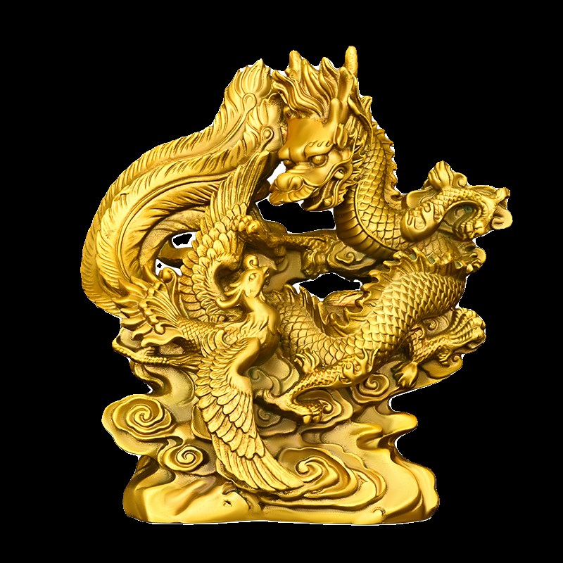 纯黄铜龙凤呈祥摆件铜龙铜凤x家居客厅卧室装饰桌面中式工艺品礼