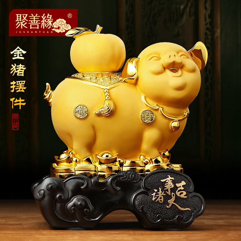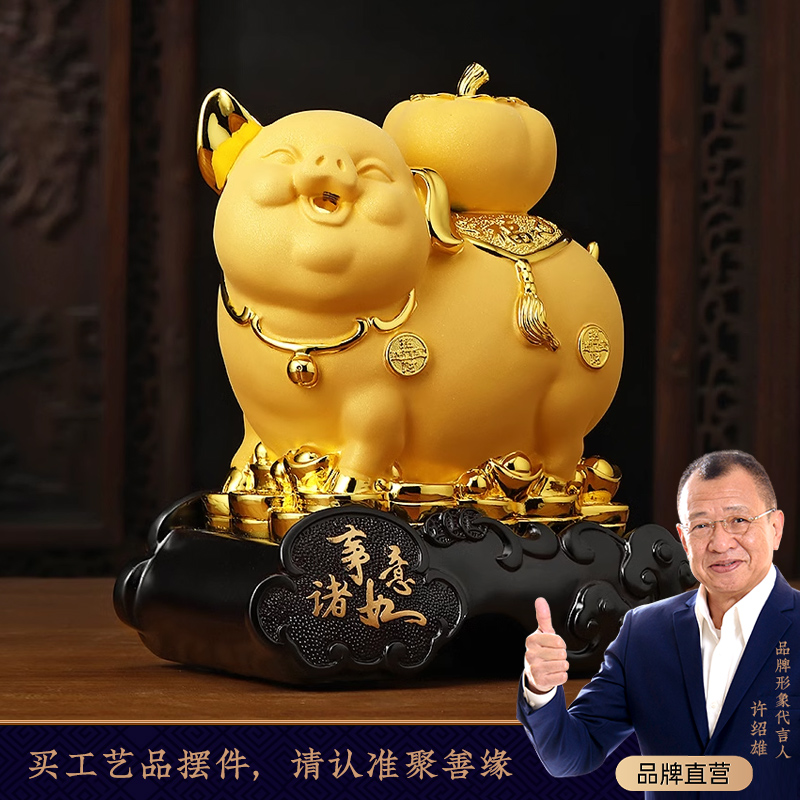 招财金猪生肖猪摆件柿子家居可爱客厅电视柜玄关装饰乔迁新居礼物