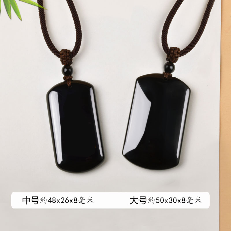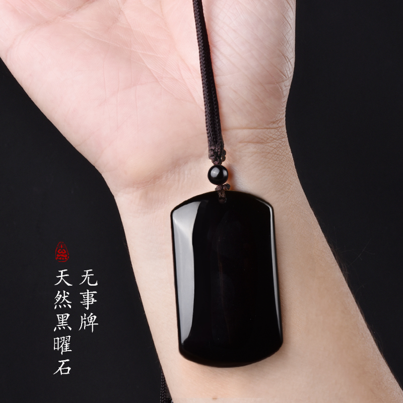 天然黑曜石官方旗舰店无事牌项链男士项坠本命年护身符吊坠女挂件