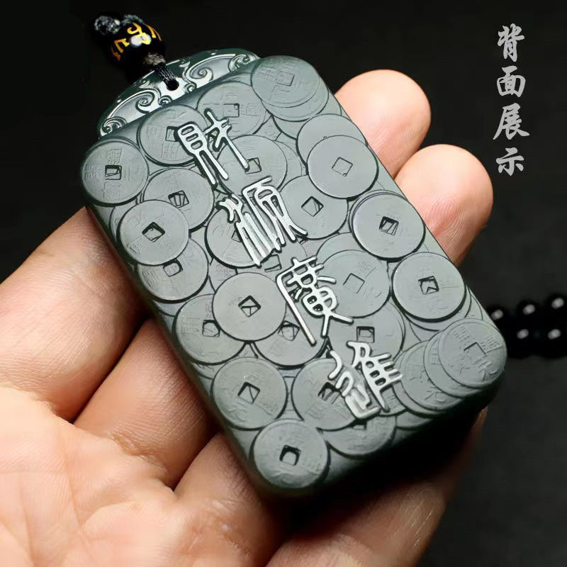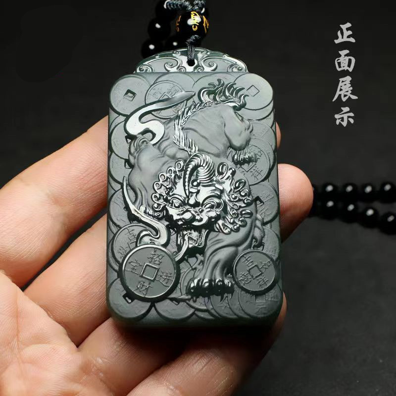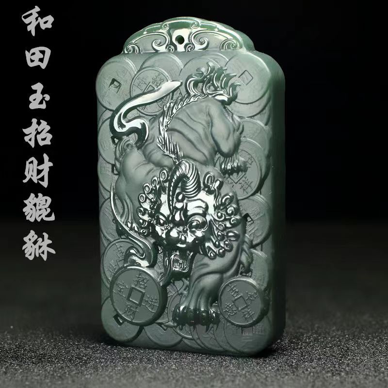 和田青玉细料貔貅吊坠男女款双面雕刻招财玉牌真玉挂件玉佩玉坠