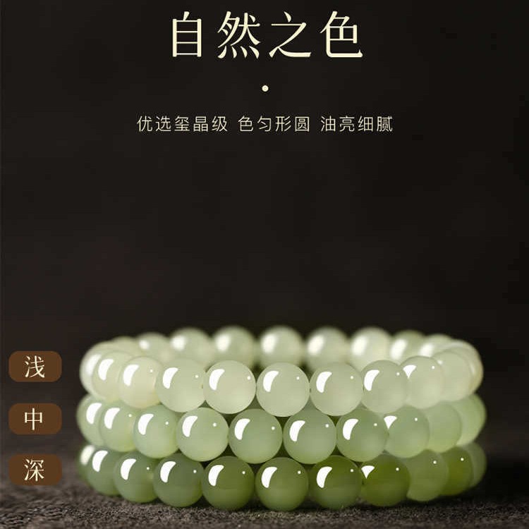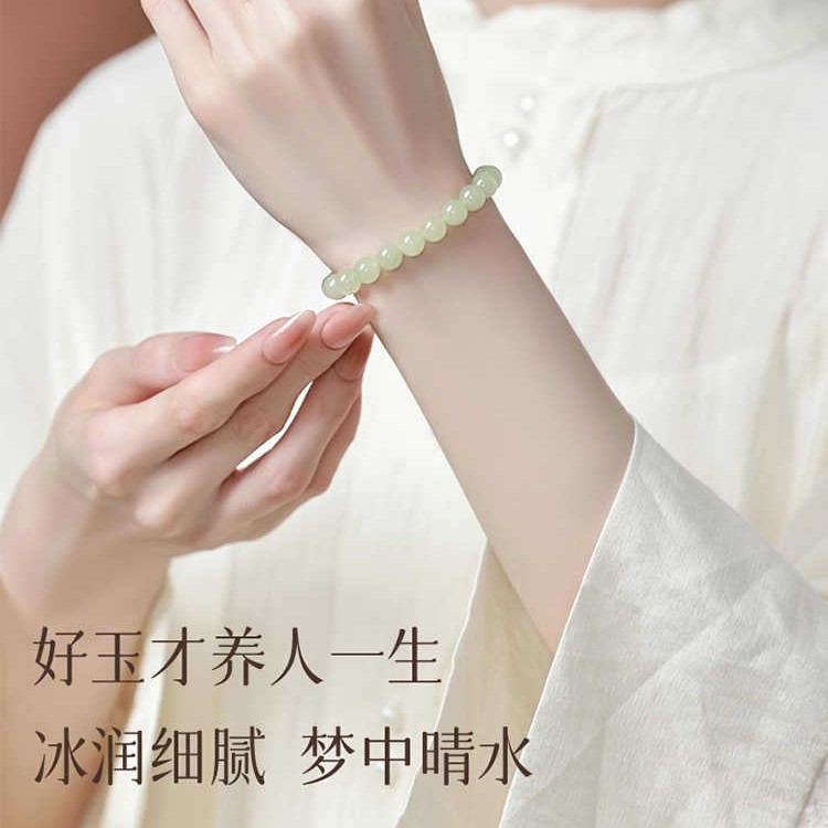 和田玉手串正品女款天然晴水玉珠子散珠青玉男官方旗舰店串珠手链