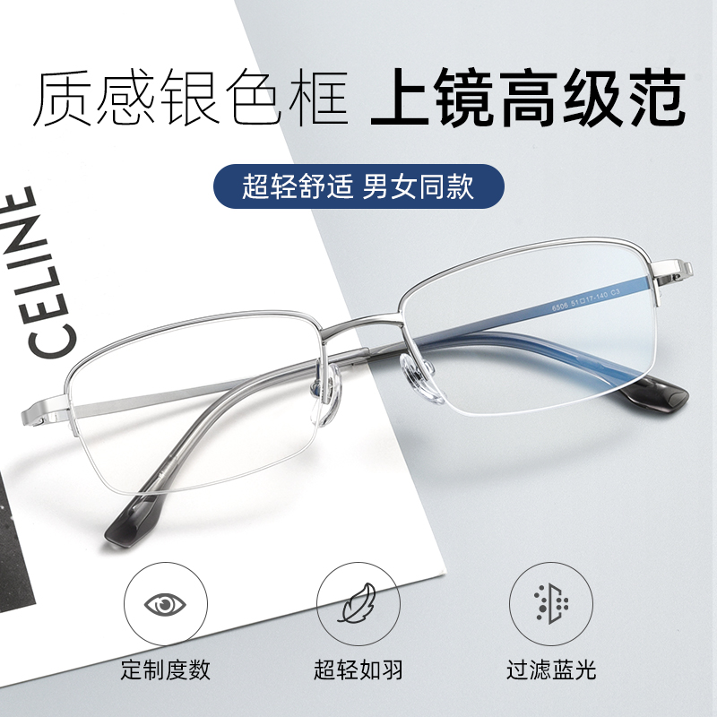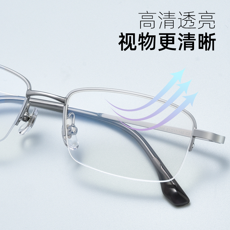 超轻纯钛半框近视眼镜框男款可配度数镜片专业网上配防蓝光眼睛架