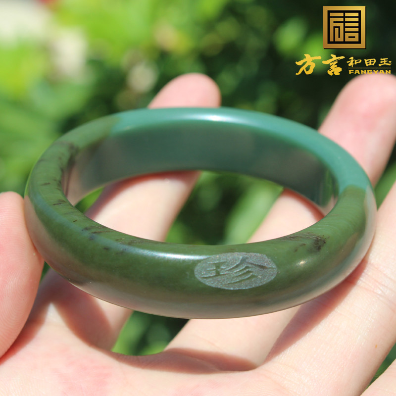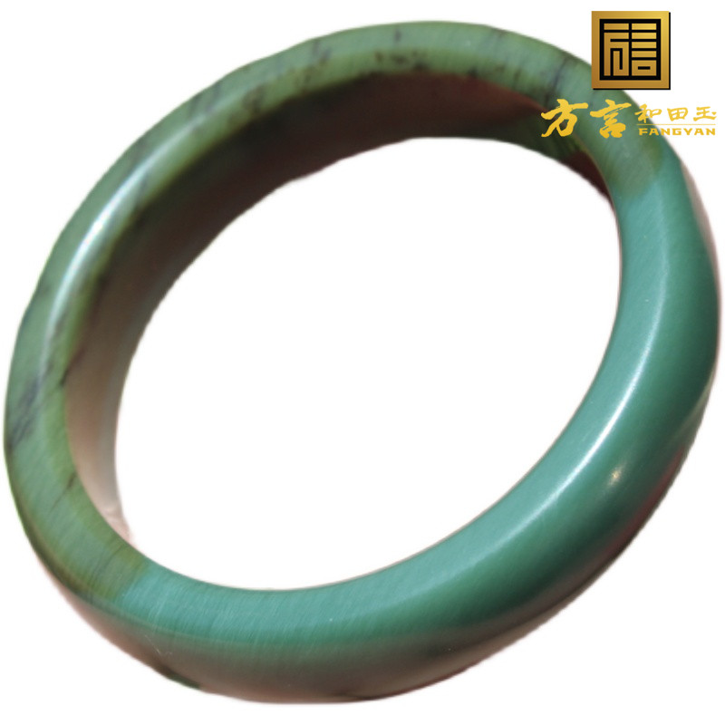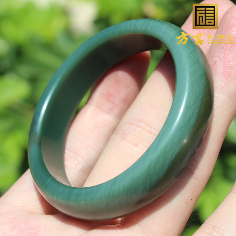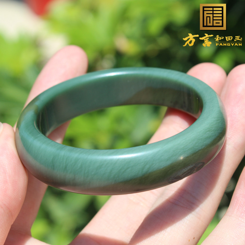 方言和田玉珍惜名品新疆老熟罕见丝绢状沙枣青籽料52mm正装手镯X5