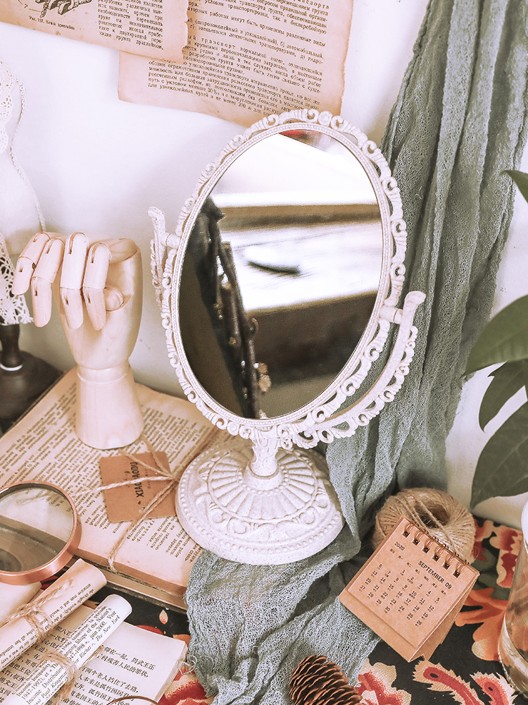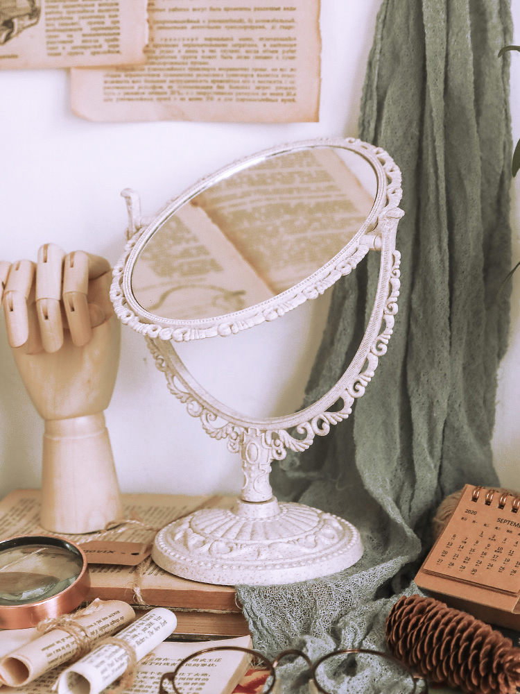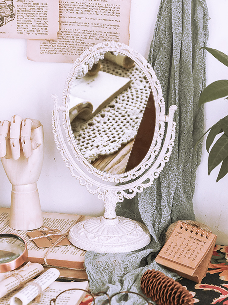 ins法式复古雕花翻转双面镜子学生宿舍桌面化妆镜拍照道具装饰品