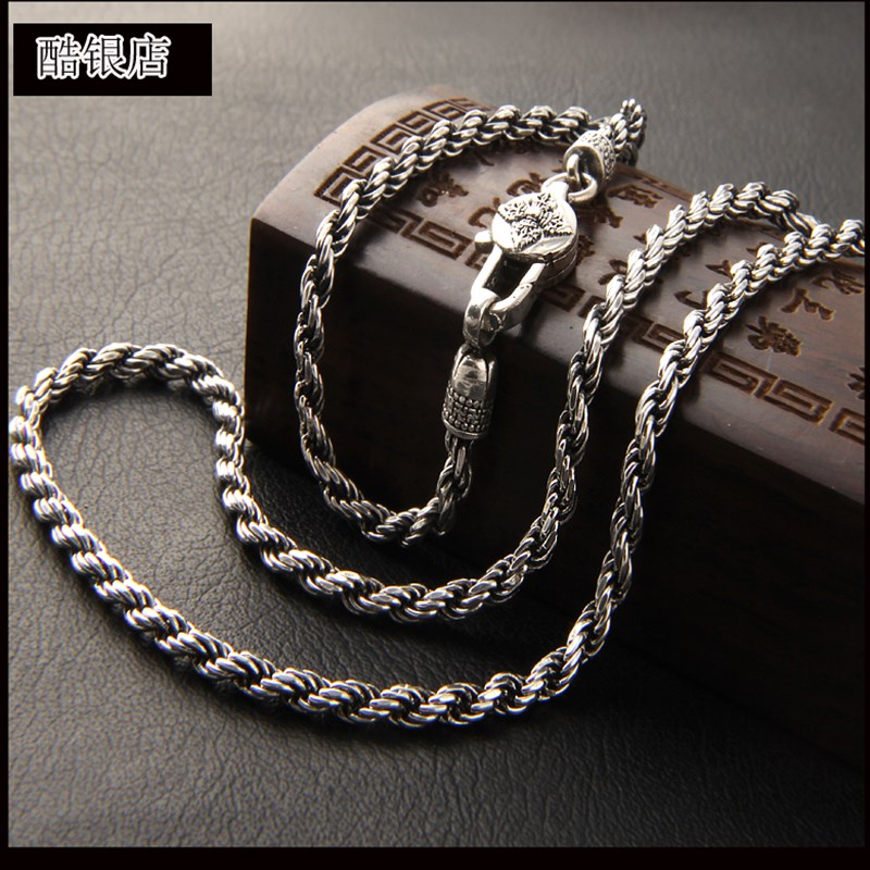 男款项链马鞭纹手工绳纹链潮品银饰金刚杵六子真言搭扣精致细工链