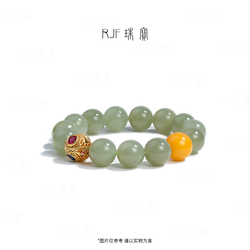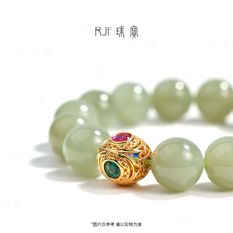 RJF【跃清】金镶嵌和田玉晴水料单圈手串轻奢设计男女情侣款