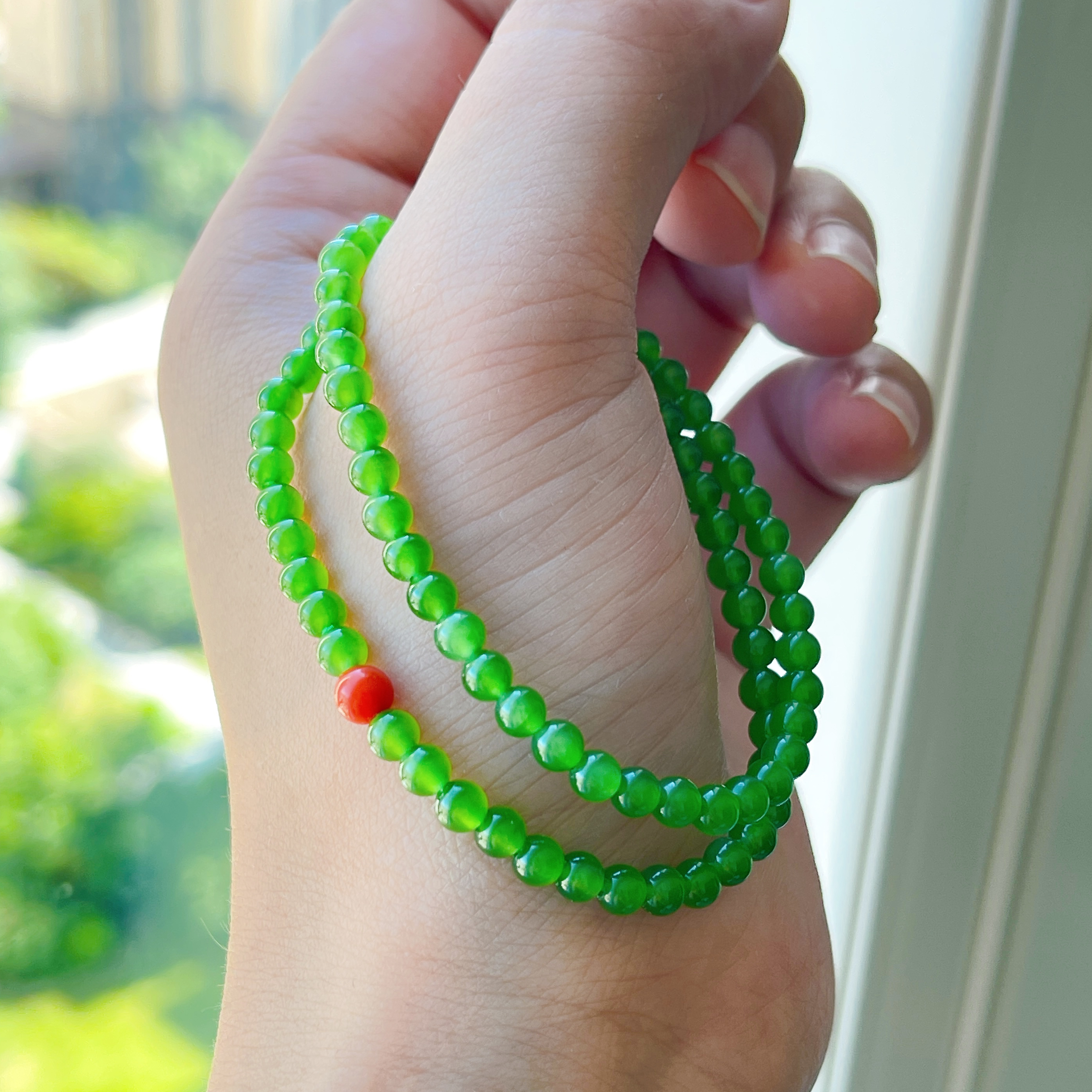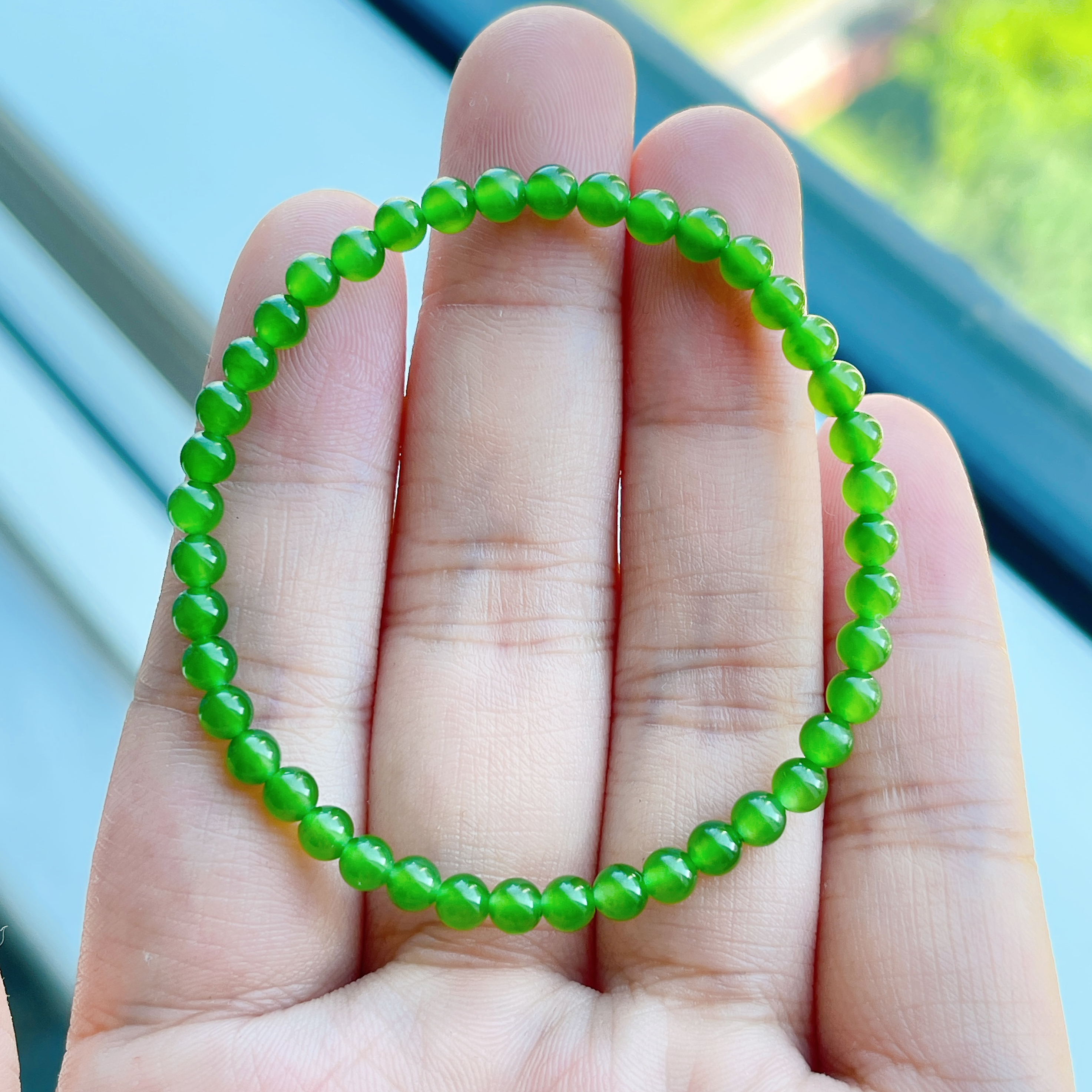 天然冰种老坑和田碧玉高色苹果绿小米圆珠子手链串钏新中式可叠戴