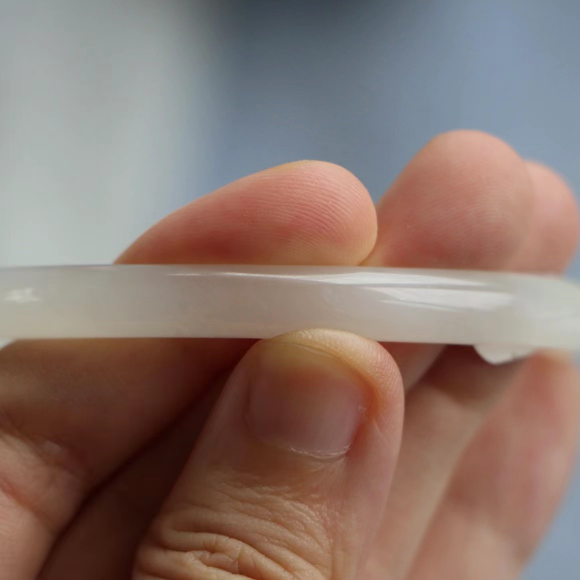保真天然和田玉手镯57圈口证书8124204和田玉羊脂白玉 青海料圆条