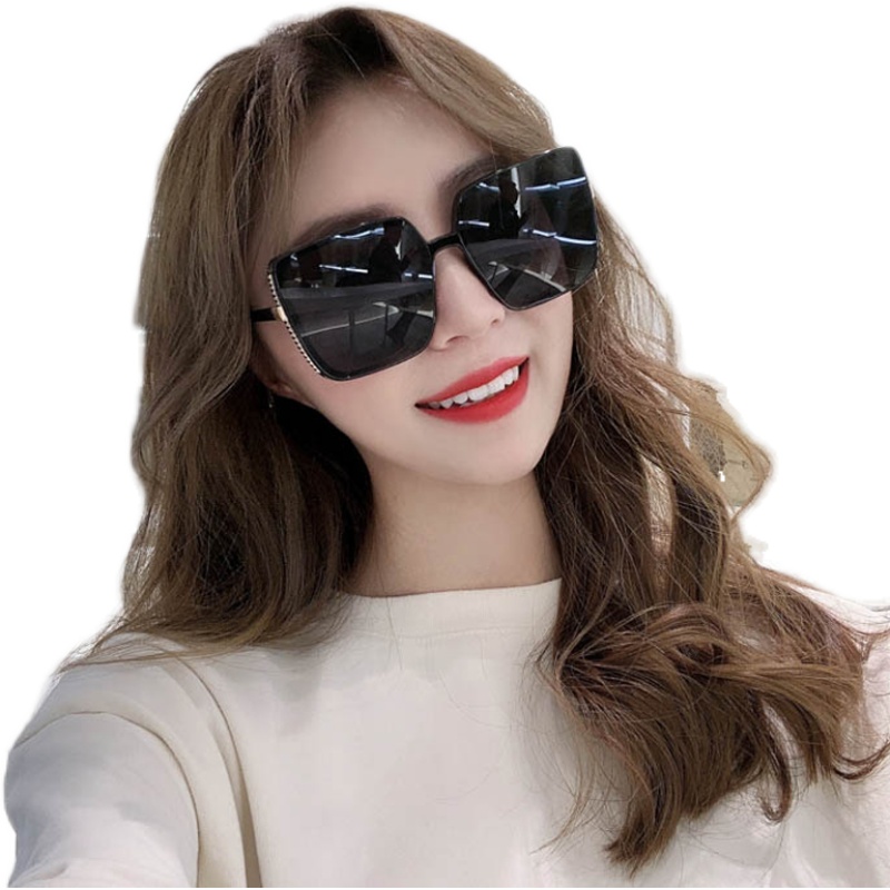 韩版大气白框偏光墨镜2021时尚个性方形平板镜面圆脸度假太阳眼镜