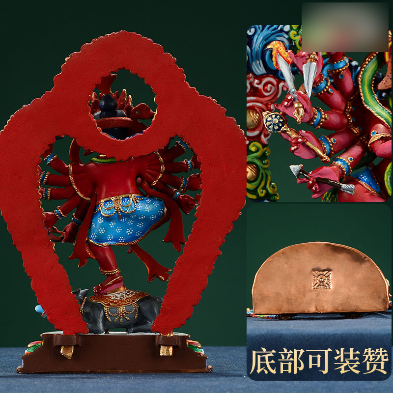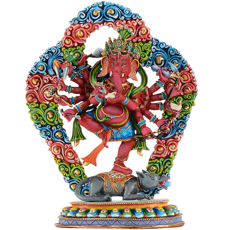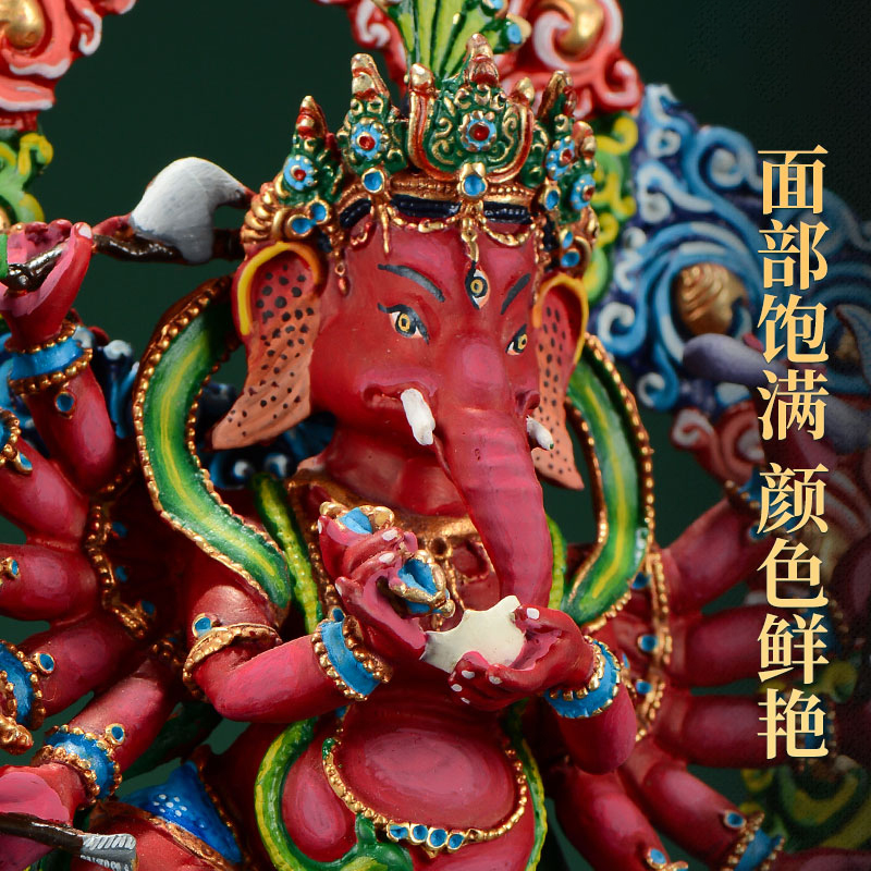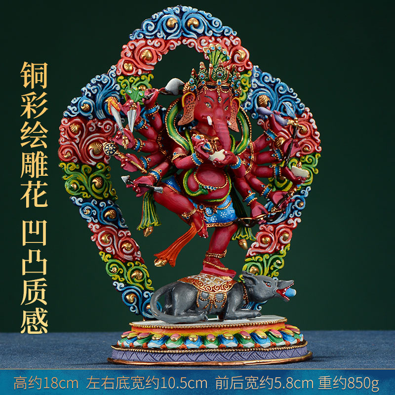 尼泊尔手工彩绘象鼻财神居家客厅桌面象鼻天铜像摆件18CM