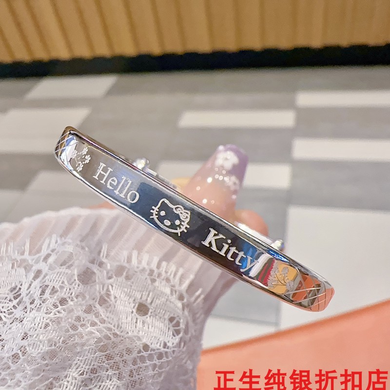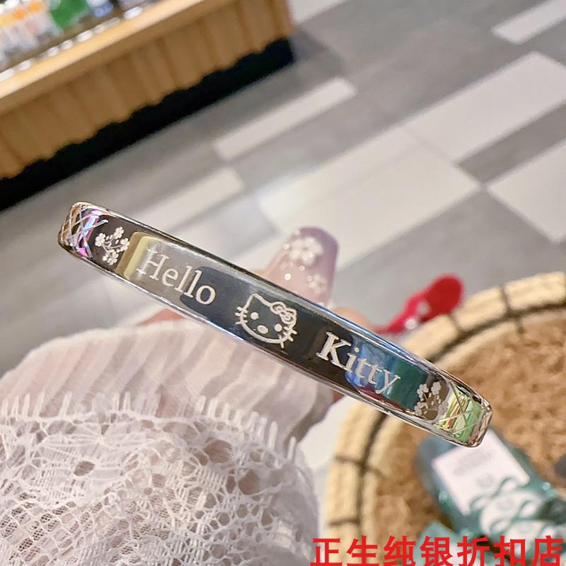 香港正生kt猫纯银手镯足银9999女宝宝小孩中大童儿童满月生日礼物