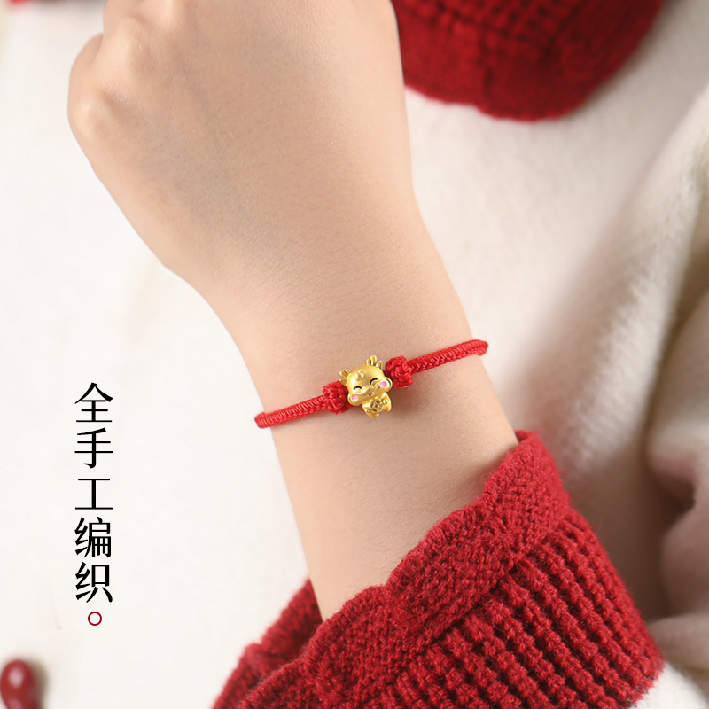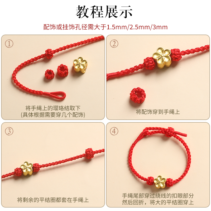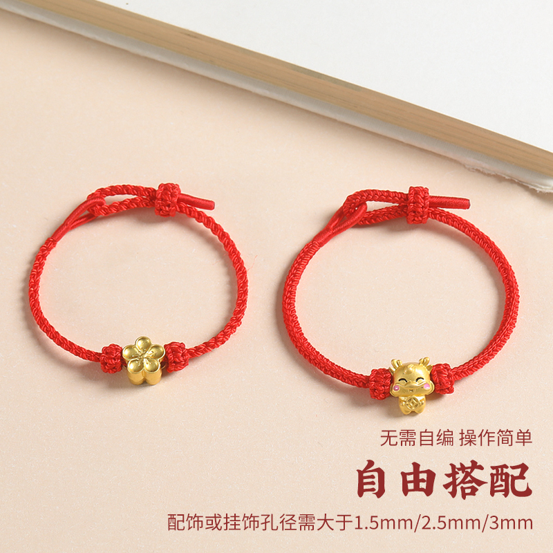 本命年红绳手链男女diy半成品可穿珠红手绳手工编织串黄金路路通