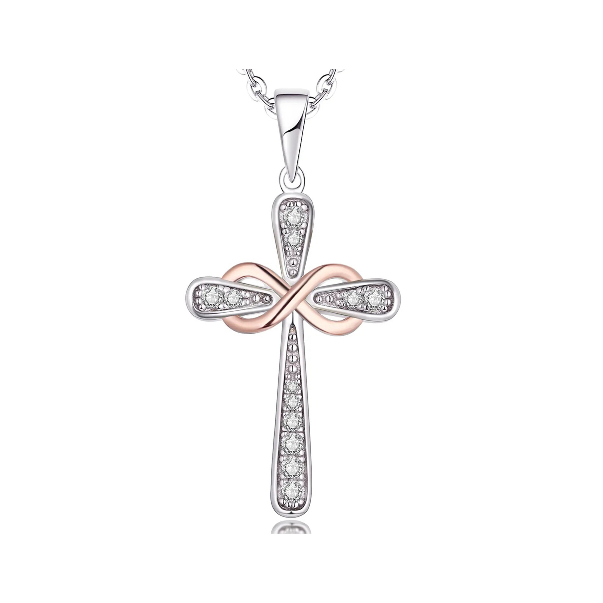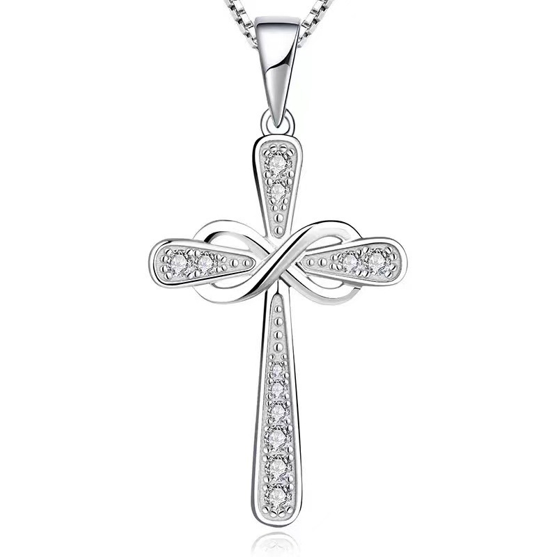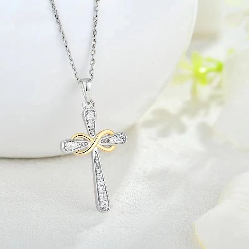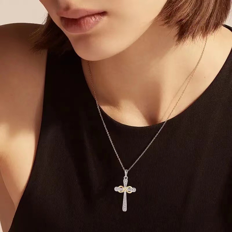 跨境纯银十字架项链新款S925欧美时尚风镶钻数字8十字架项链