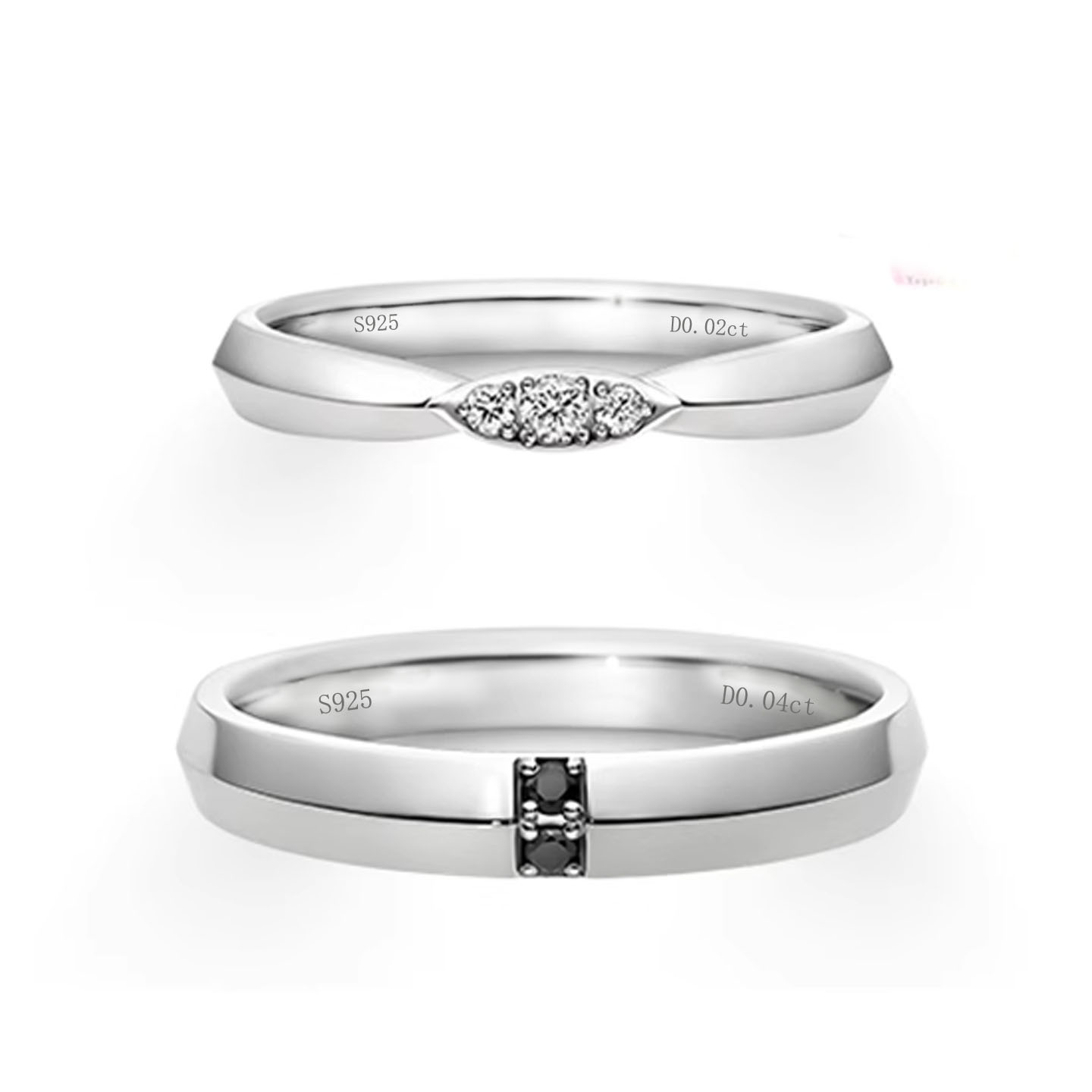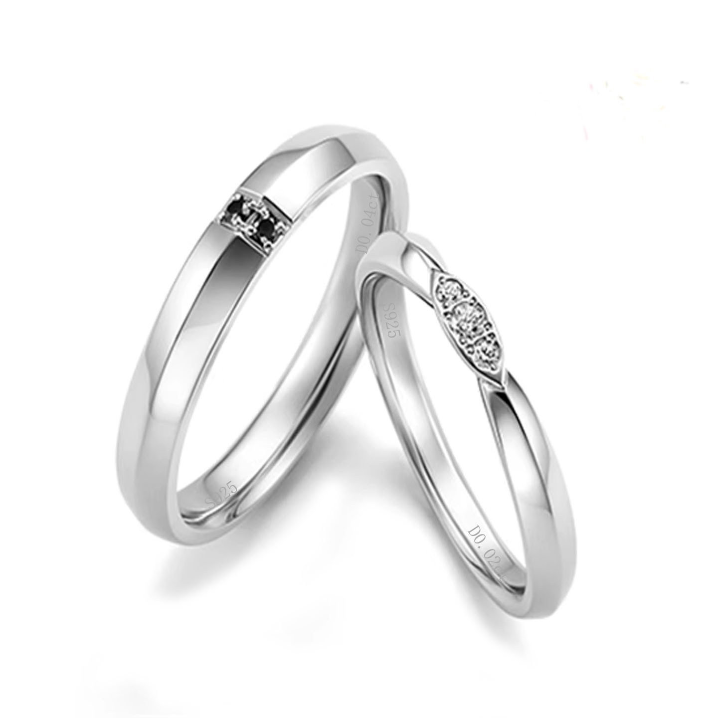 星月同辉情侣对戒925银镀白金镶嵌黑莫桑钻石情侣黑骑士订做原创