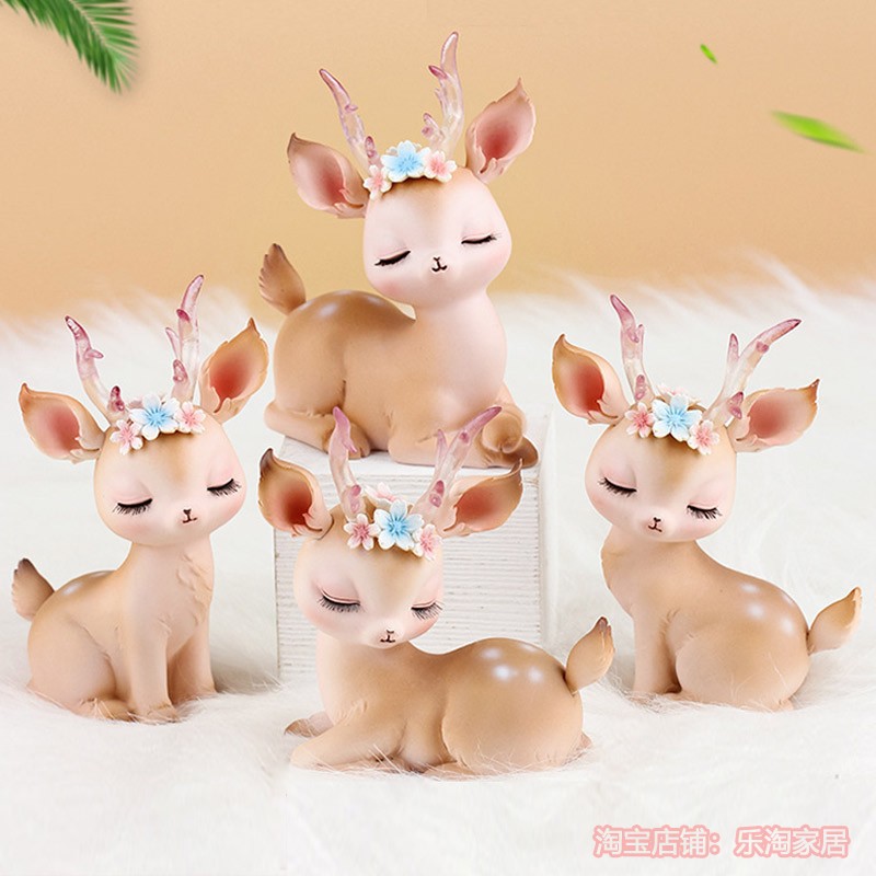 北欧风可爱梅花小鹿一路平安摆件少女心房间卧室装饰女孩生日礼物