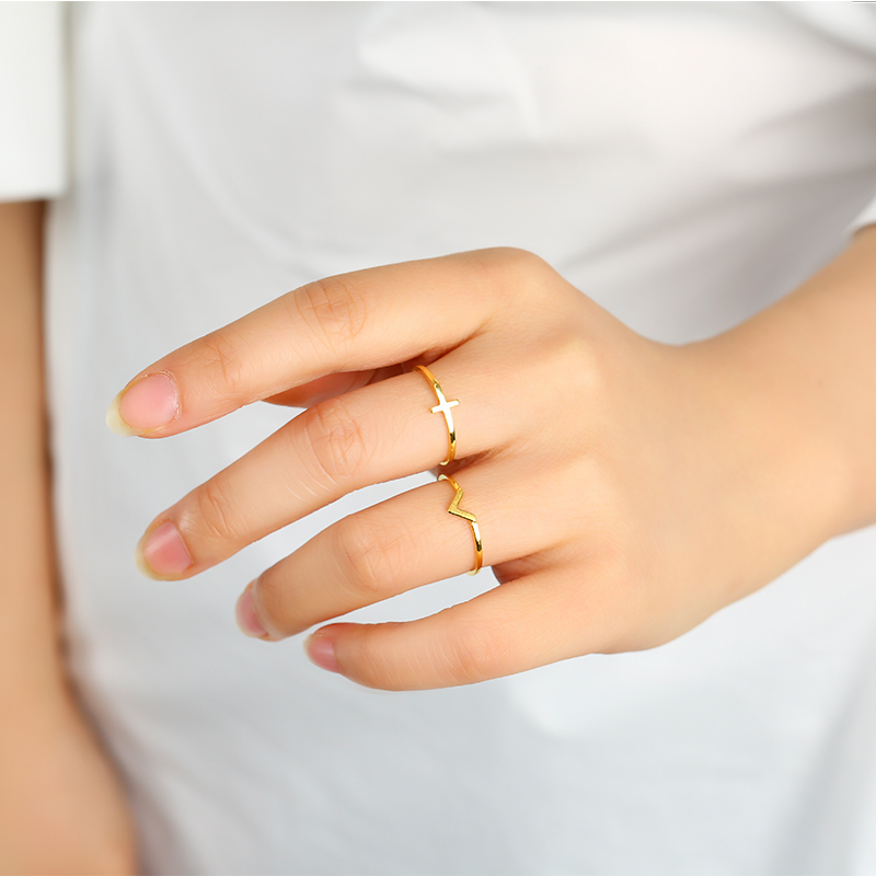 黄金戒指999足金字母V细款小克重叠戴2025新款闭口按克实心纯金女