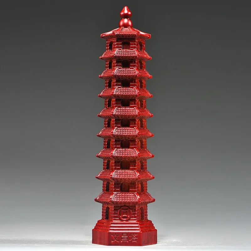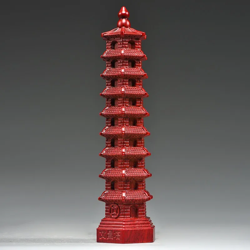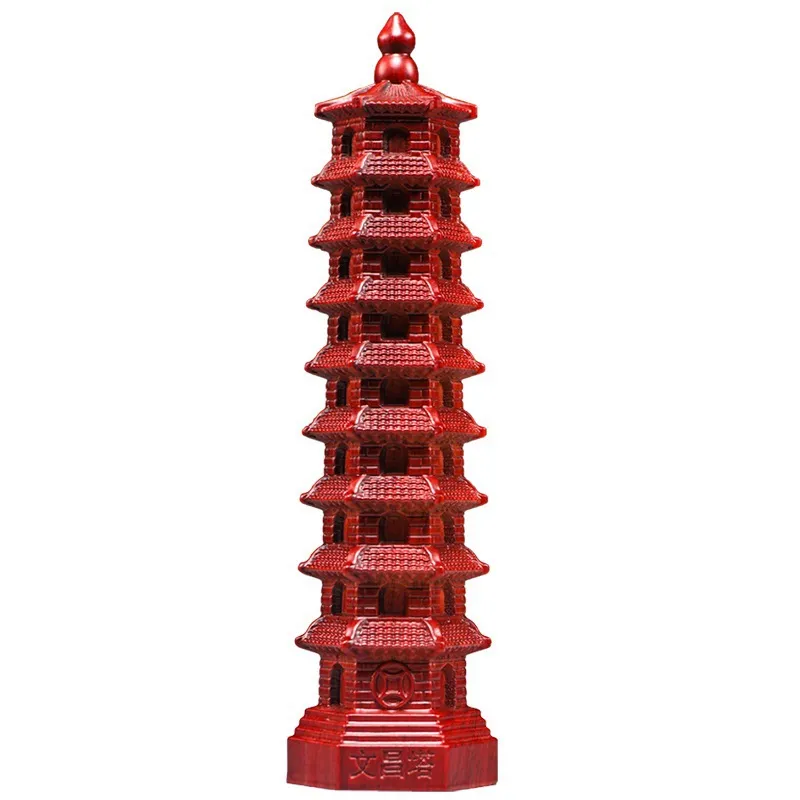 红色九层文昌塔摆件实木质雕刻9层文昌塔家居玄关装饰工艺ァ其ァ