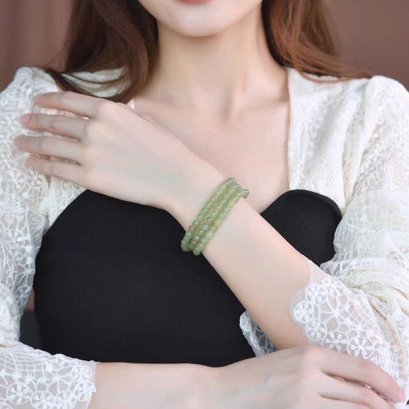 日本品质天然和田玉手串女高冰晴水和田玉多圈三圈玉石珠子散珠串
