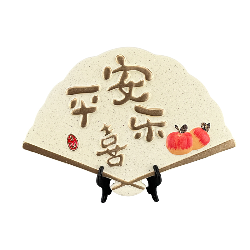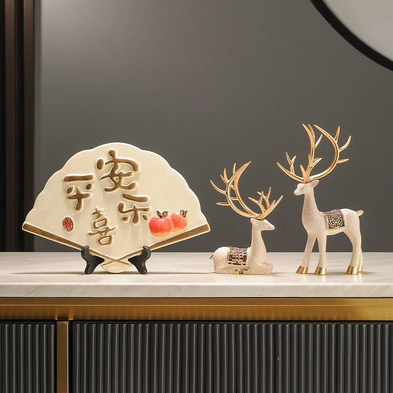 中国风平安喜乐扇子酒柜摆件客厅玄关电视柜书房办公室陶瓷装饰品