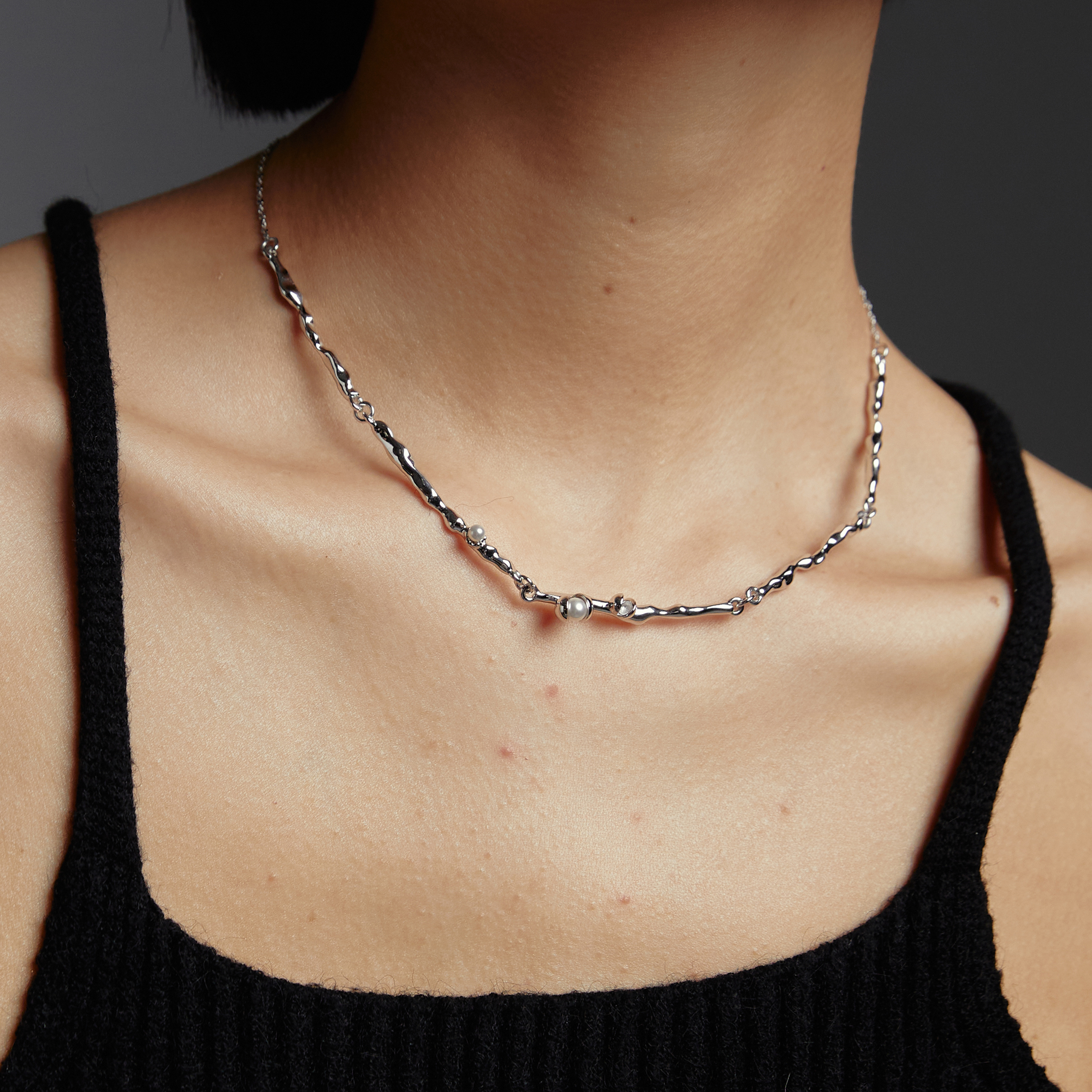 TowerOneSelect官方店ZHAO花椒珍珠液态金属项链冷淡风简约锁骨链