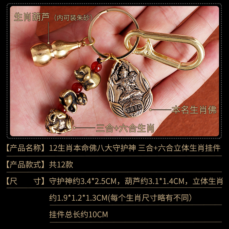 黄铜三合六合十二生肖汽车挂件本命佛八大守护神钥匙扣坠阿弥陀佛