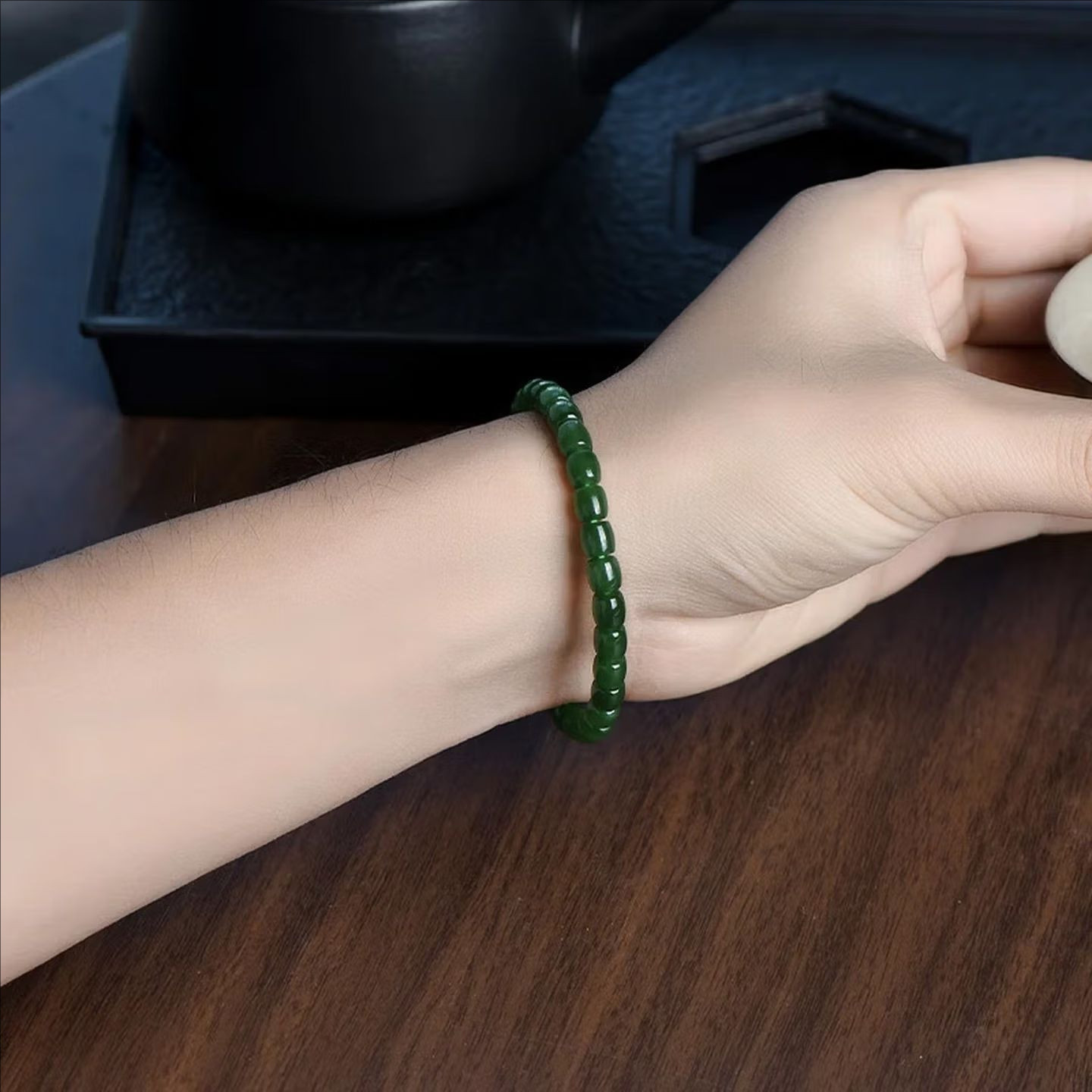 正品新疆和田碧玉手串直切俄料手链送妈妈女友礼物国风气质带证书