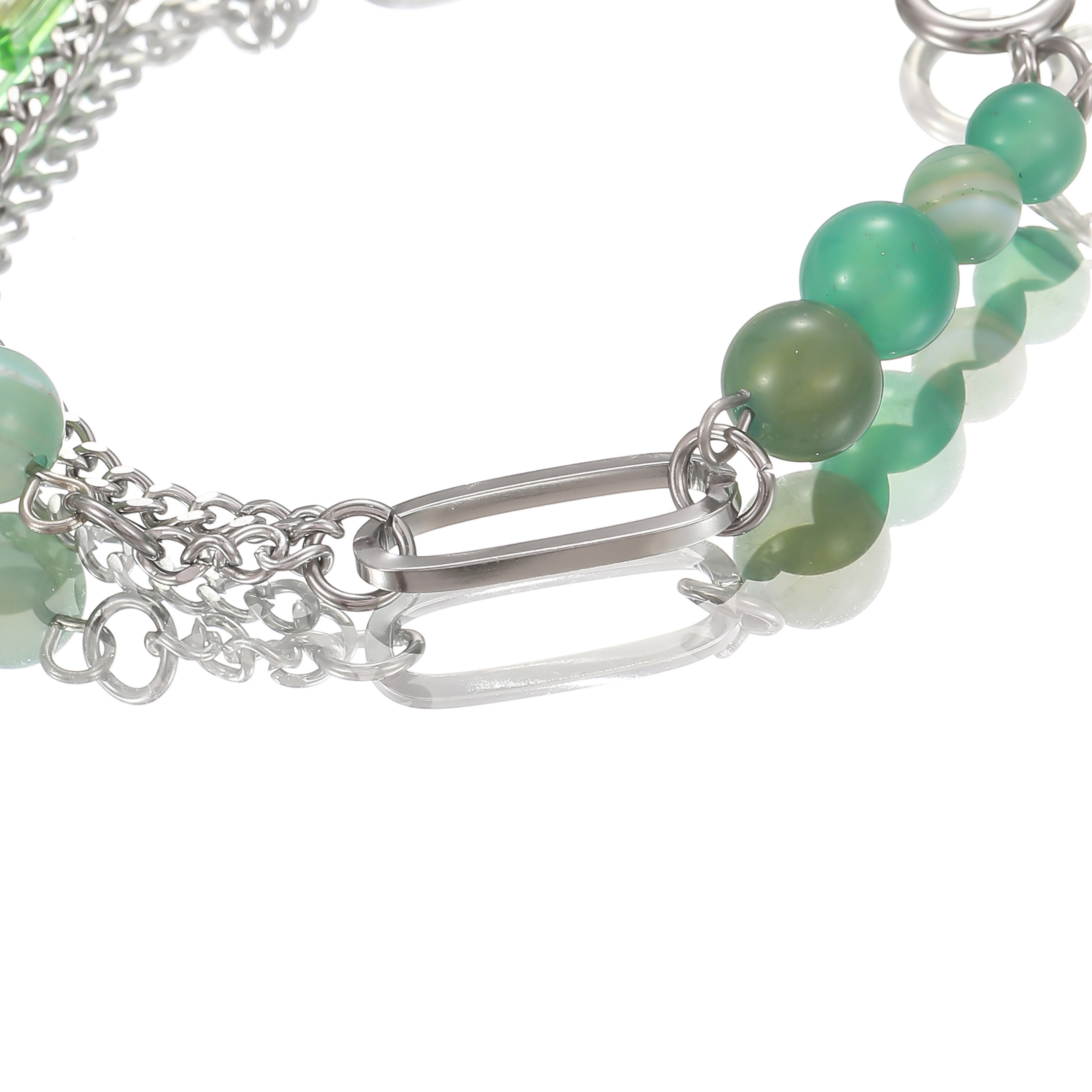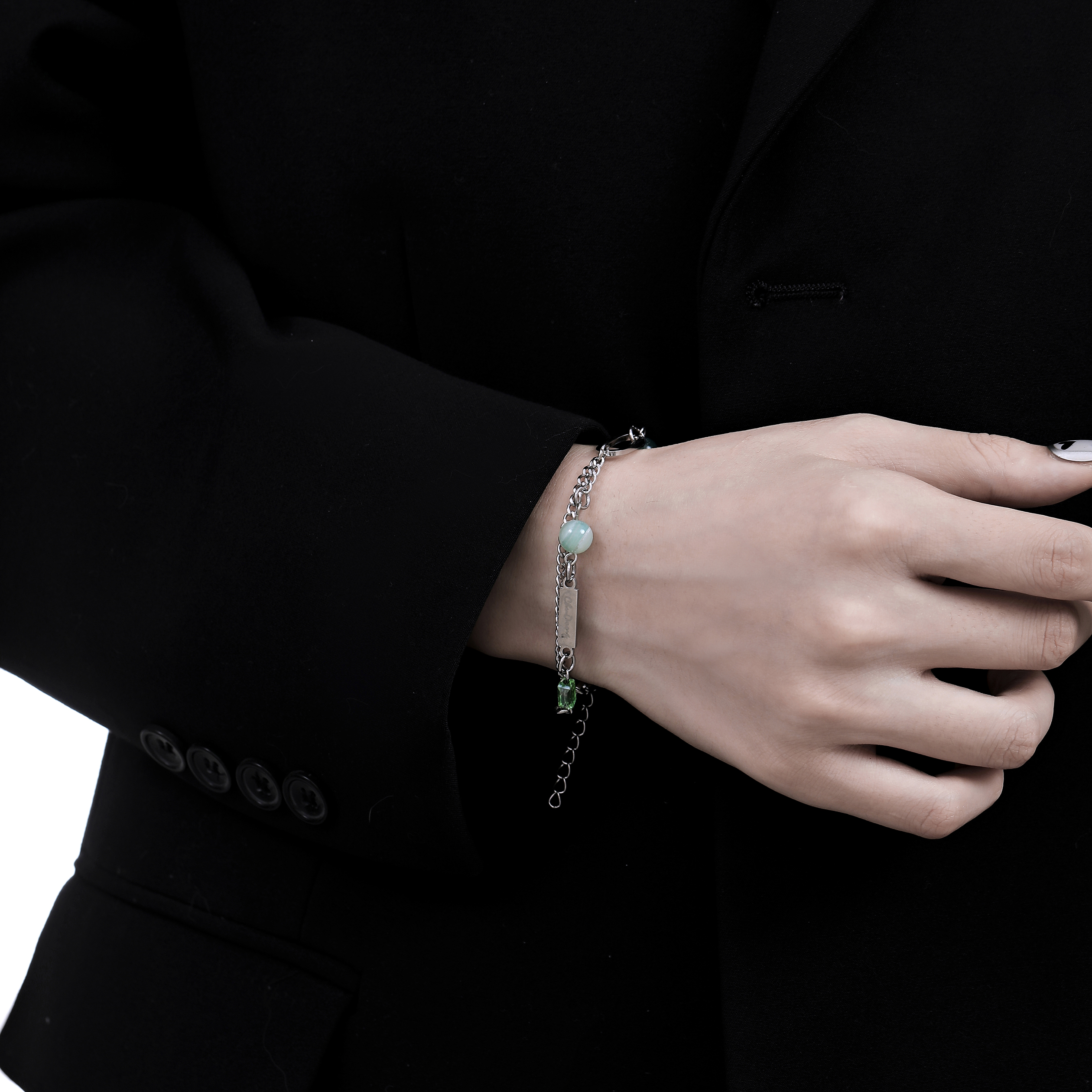 中性天然玉石拼接双层手链男潮酷嘻哈ins小众设计女高级感情侣款