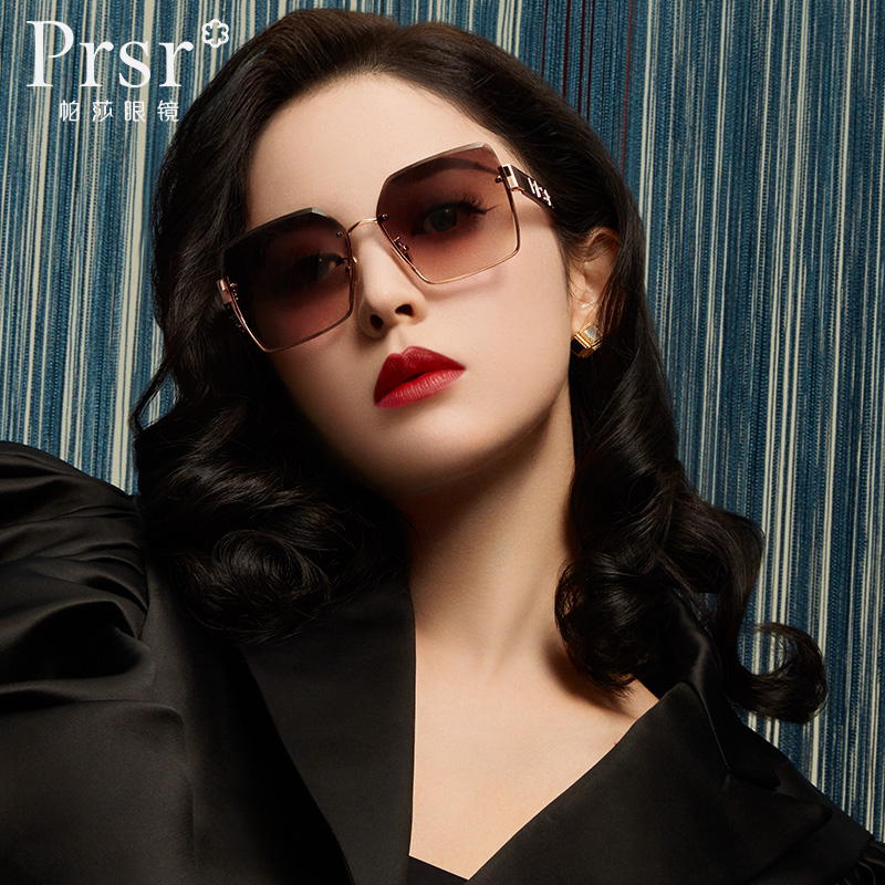 帕莎眼镜官方正品新款太阳镜女防紫外线无框渐变茶色墨镜可配近视