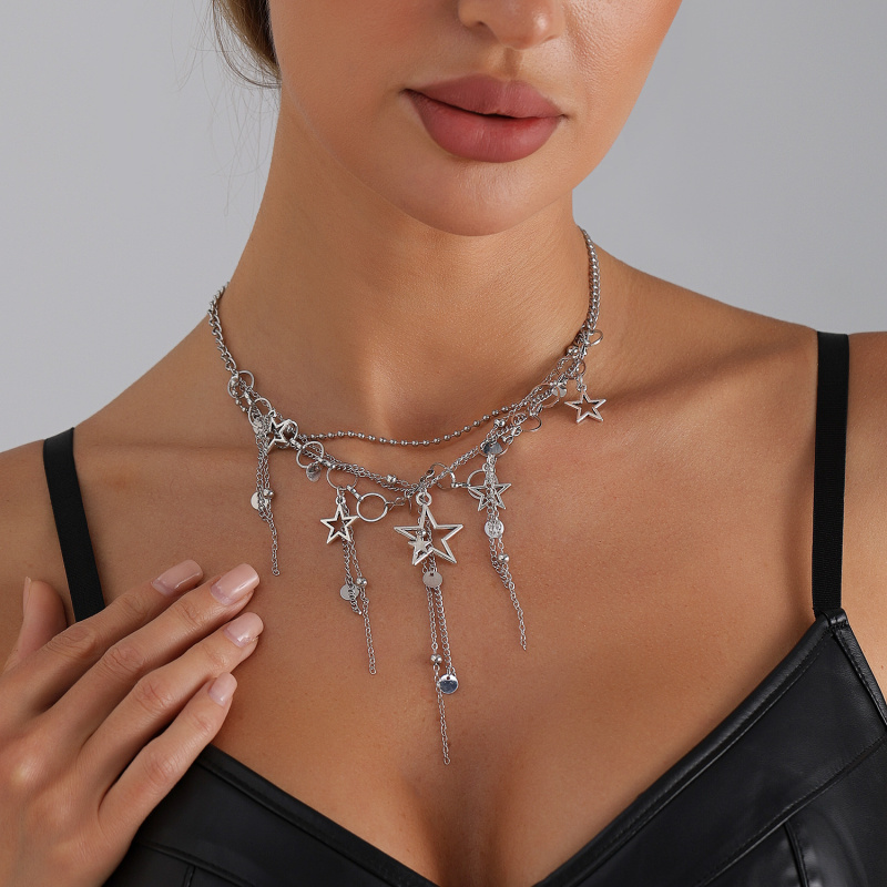 欧美饰品轻奢金属感几何五角星流苏项链ins风设计感高级项饰