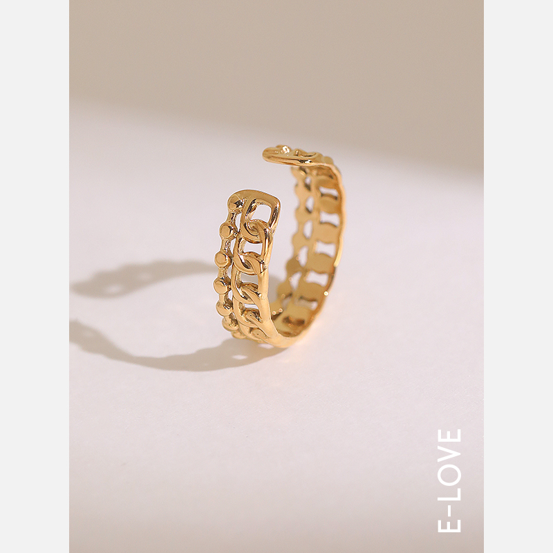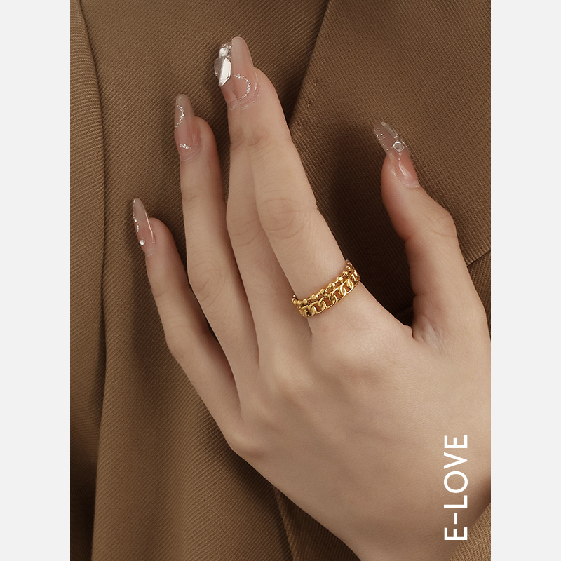 日韩ins潮网红冷淡风简约小众复古K金色开口戒指女高级感个性指环