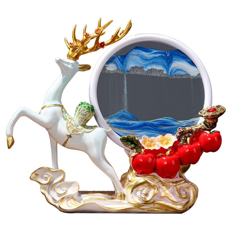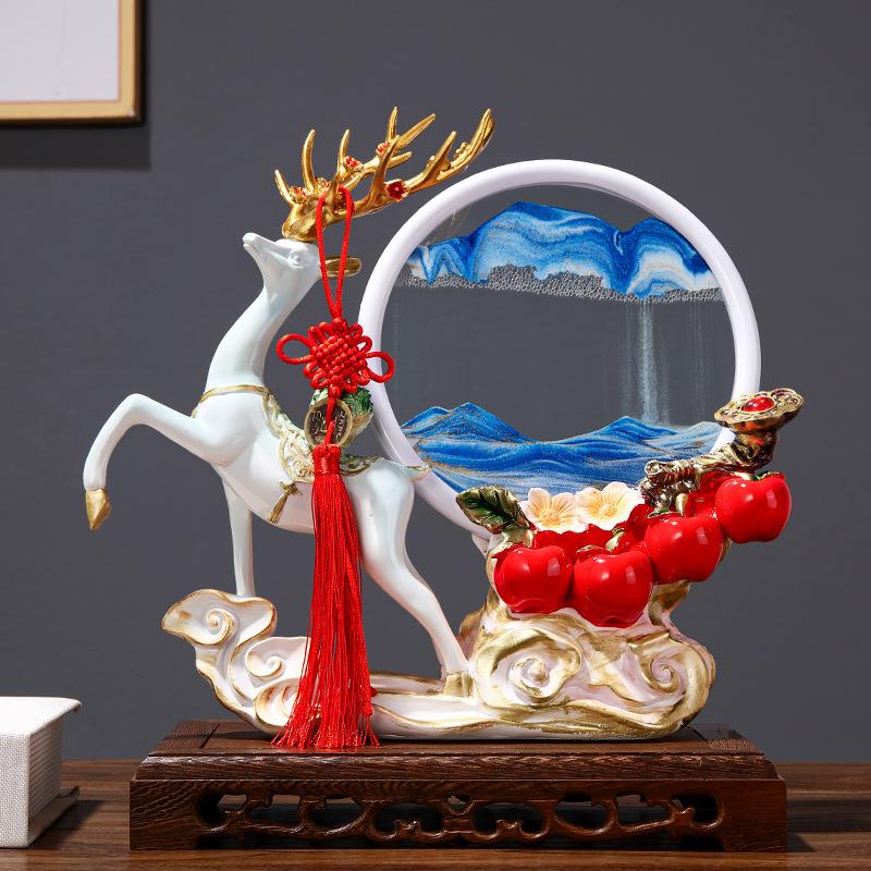新中式招财鹿流沙画摆件客厅玄关电视柜家居装饰品办公室桌面摆件