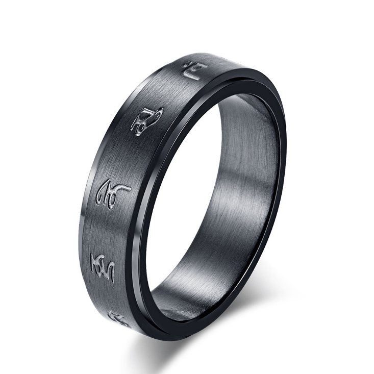 招财黑财神戒指男女指环黄财神戒指转运六字真言钛钢指环可转动