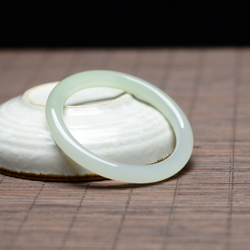天然和田冰晴水玉镯青海料冰底浅绿色细圆条手镯 A货少女款玉手饰