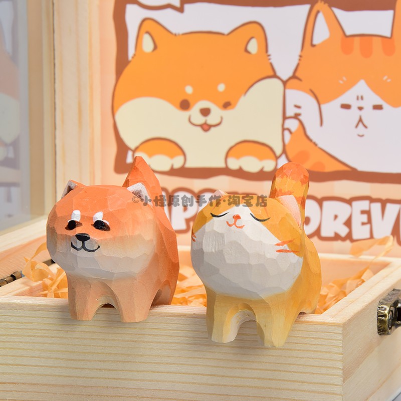 手工木雕可爱小猫咪摆件办公室桌面装饰解压治愈情绪稳定生日礼物