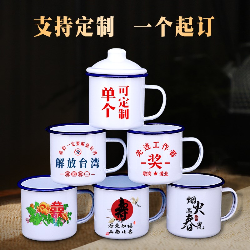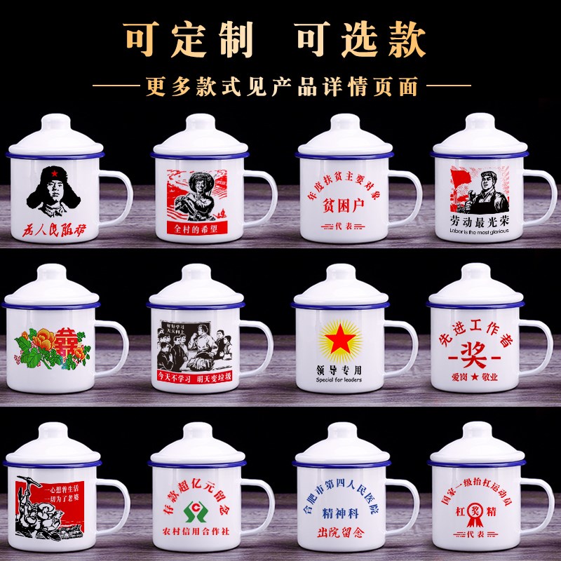 巨无霸搪瓷杯带盖k特大容量老干部水杯超大号怀旧老式茶缸定制杯
