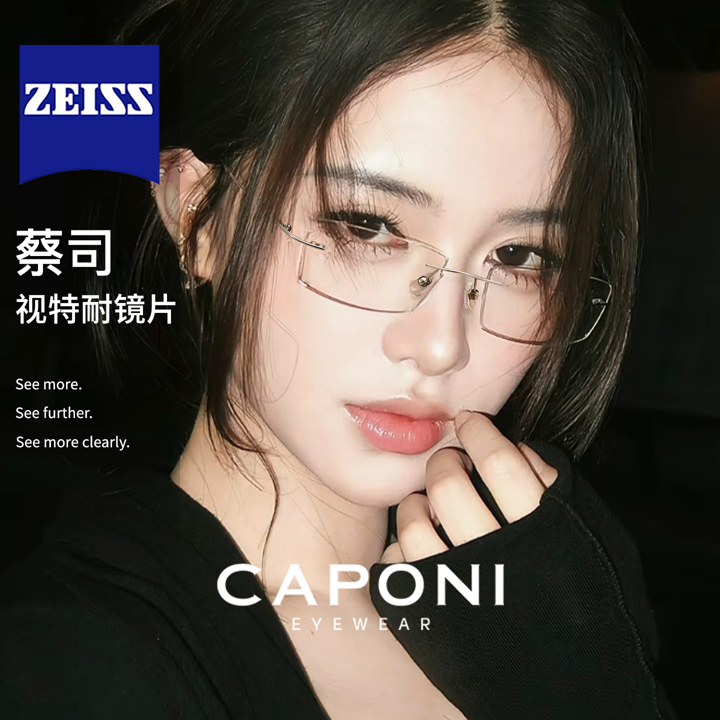 CAPONI文咏珊同款无框眼镜女金丝钛架无边框超轻近视高级高智感