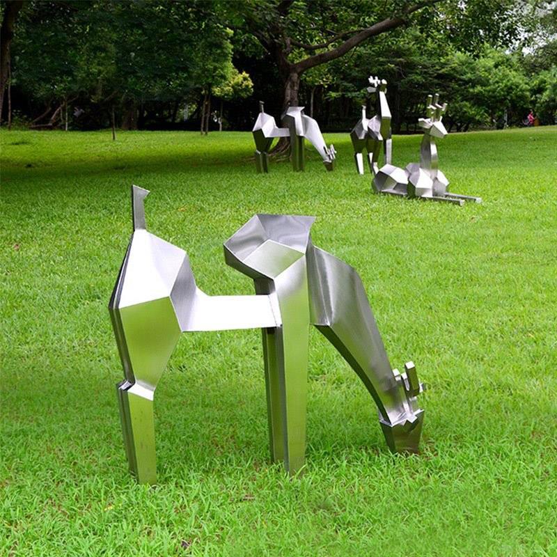 定制户外不锈钢梅花鹿雕塑简约现代镜面几何铁艺动物园林装饰摆件