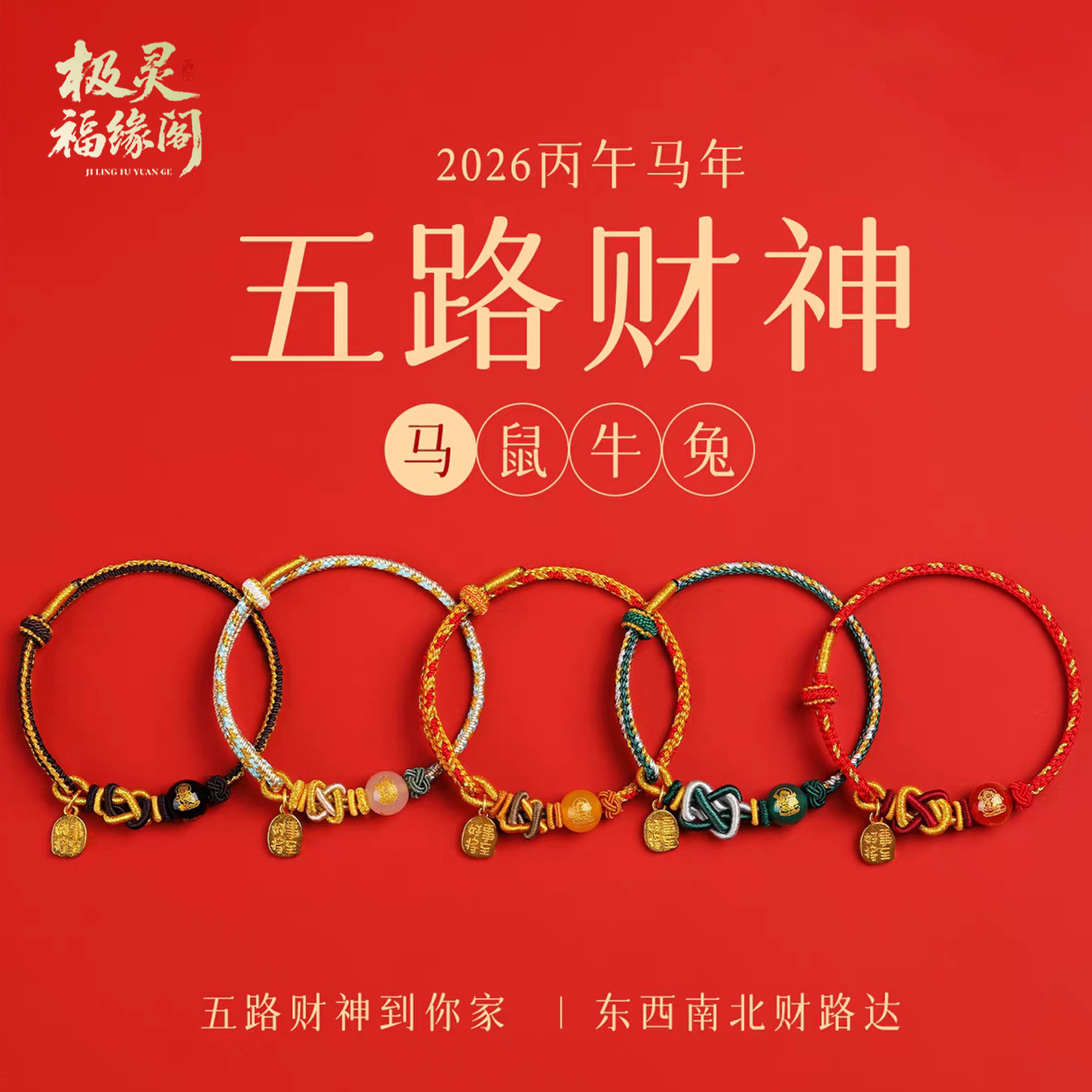 2026马本命年红绳手链马鼠牛兔12生肖太岁红色编织手绳男女护身符