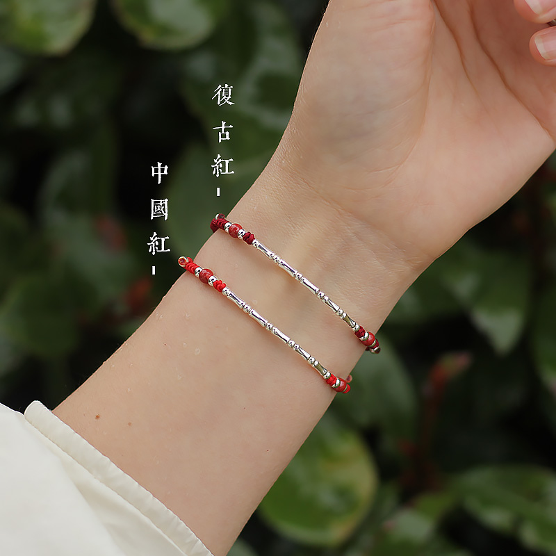 竹节纯银2025龙年本命年红绳手链女款手工编织朱砂转运珠脚链手绳