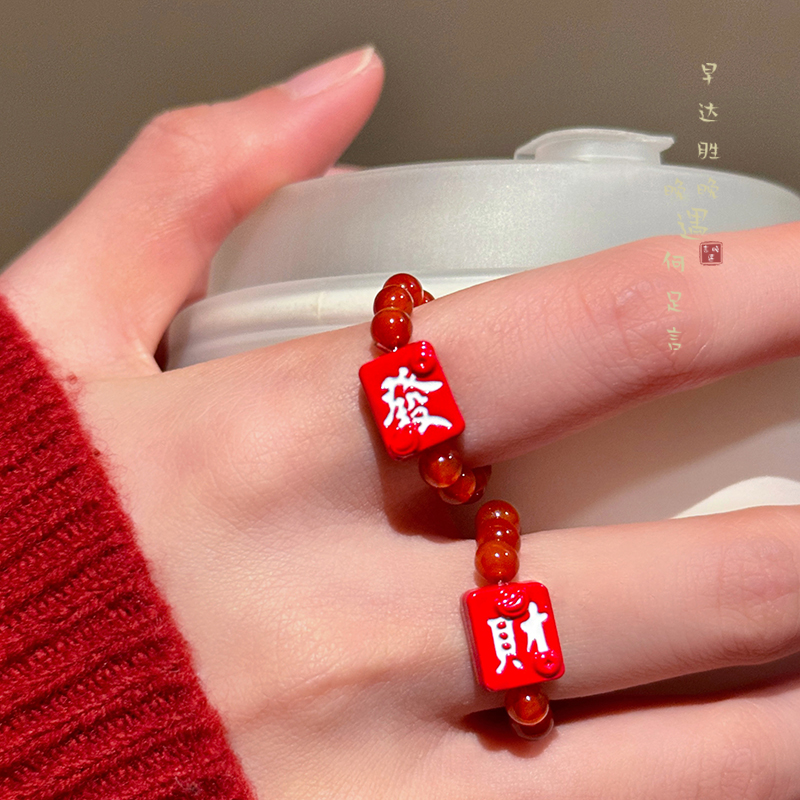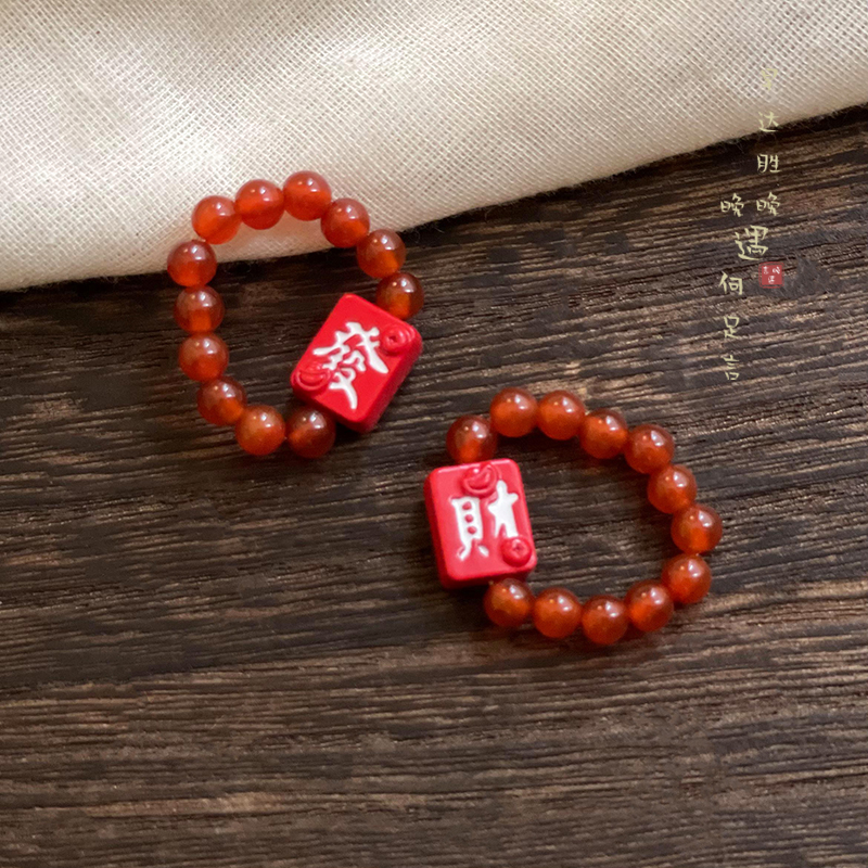 赢麻了~新年红色个性独特发财戒指小众设计感麻将串珠食指戒指环