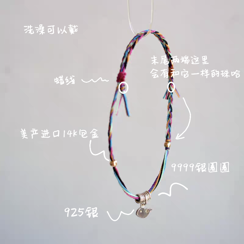 乐夏 纯银编织情侣手绳简约手链女海豚鲸鱼小众甜酷女生 原创自制