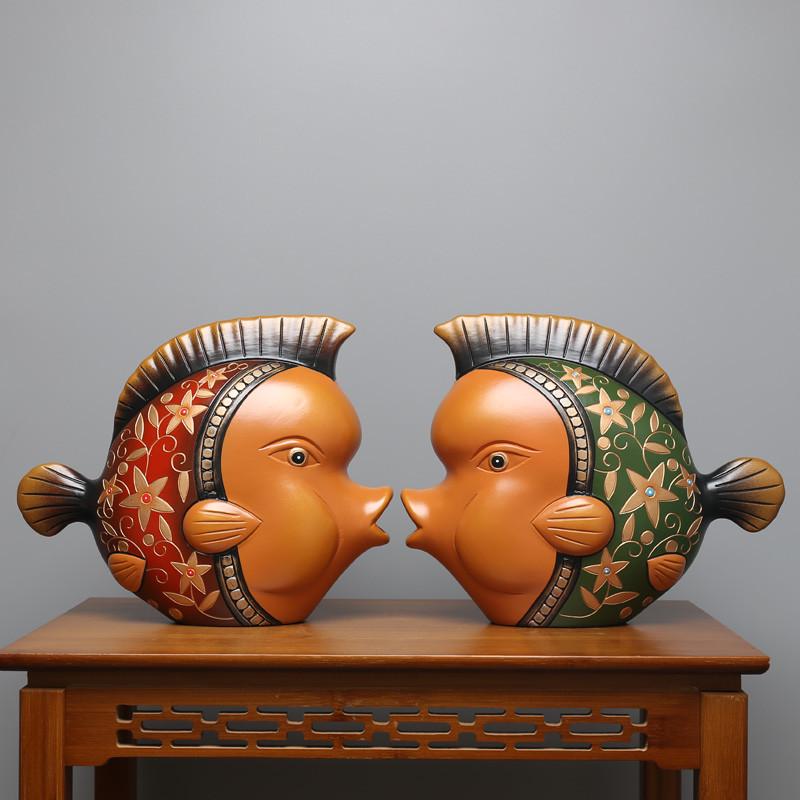 博古架工艺玄关客厅小酒柜陶瓷B摆件鱼隔断对进门中式装饰品入户