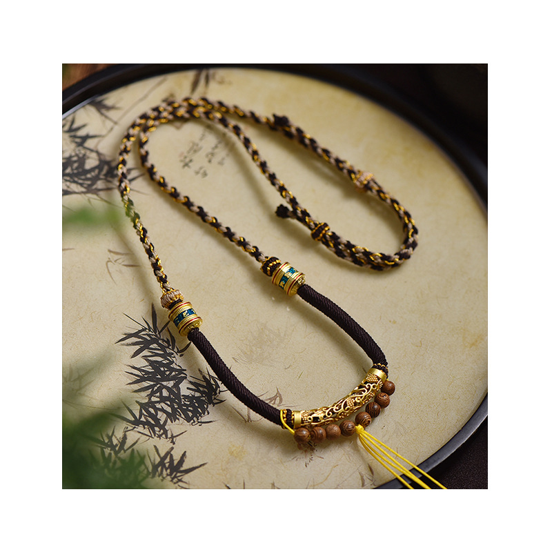 藏式手工编织吊坠绳唐卡佛牌挂绳手搓棉线男女同款锁骨链伸缩调节