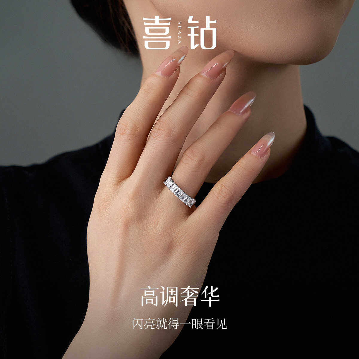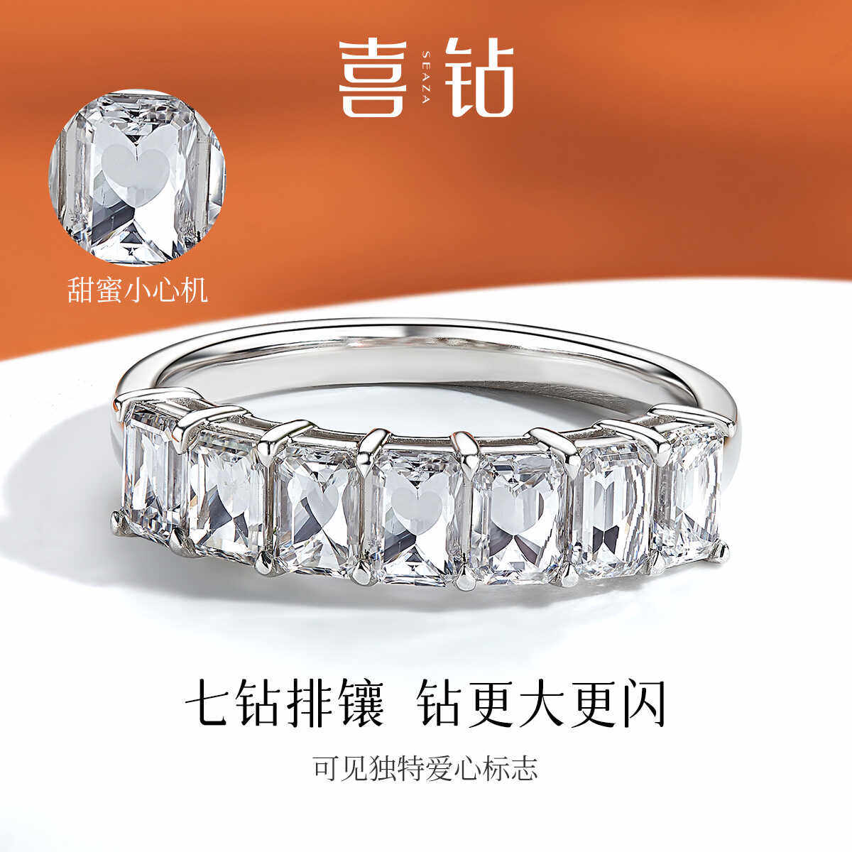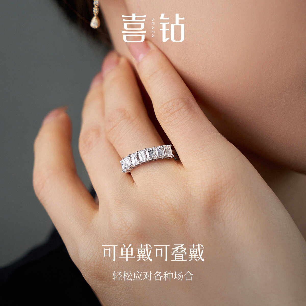 喜钻 七公主钻石排戒18k金直排群镶钻戒女款天然真钻排钻戒指