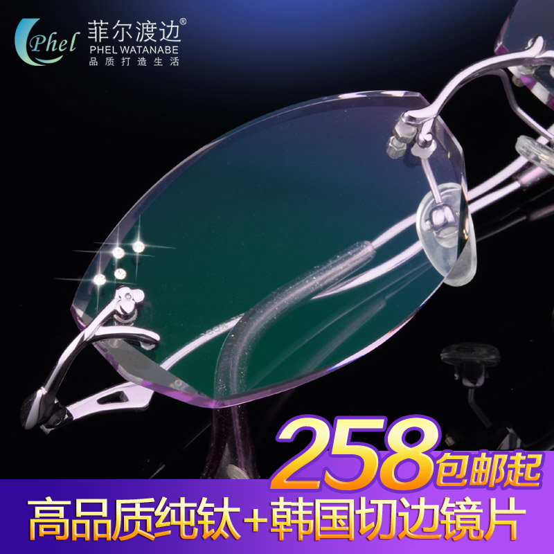 新品钻石切边眼镜镶钻钛架无框眼镜框女款眼镜架 配成品近视眼镜