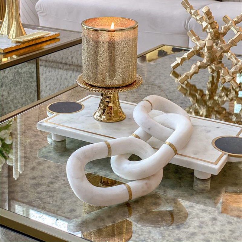 侘寂风黄洞石大理石家居书房卧室电视柜桌面书柜创意多环双环摆件