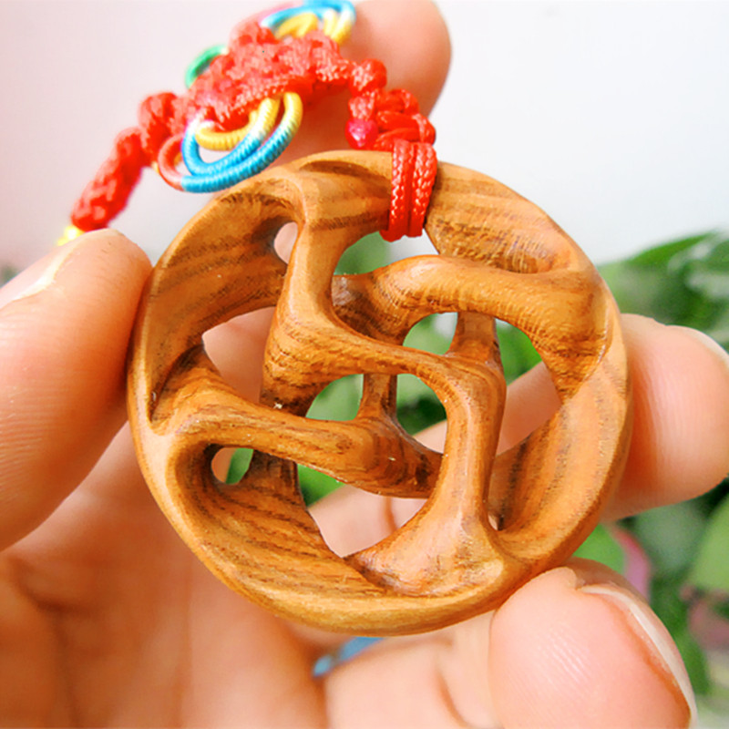 天然桃木转运珠手把件镂空项链发财吊坠挂件文玩把玩物件男女随身